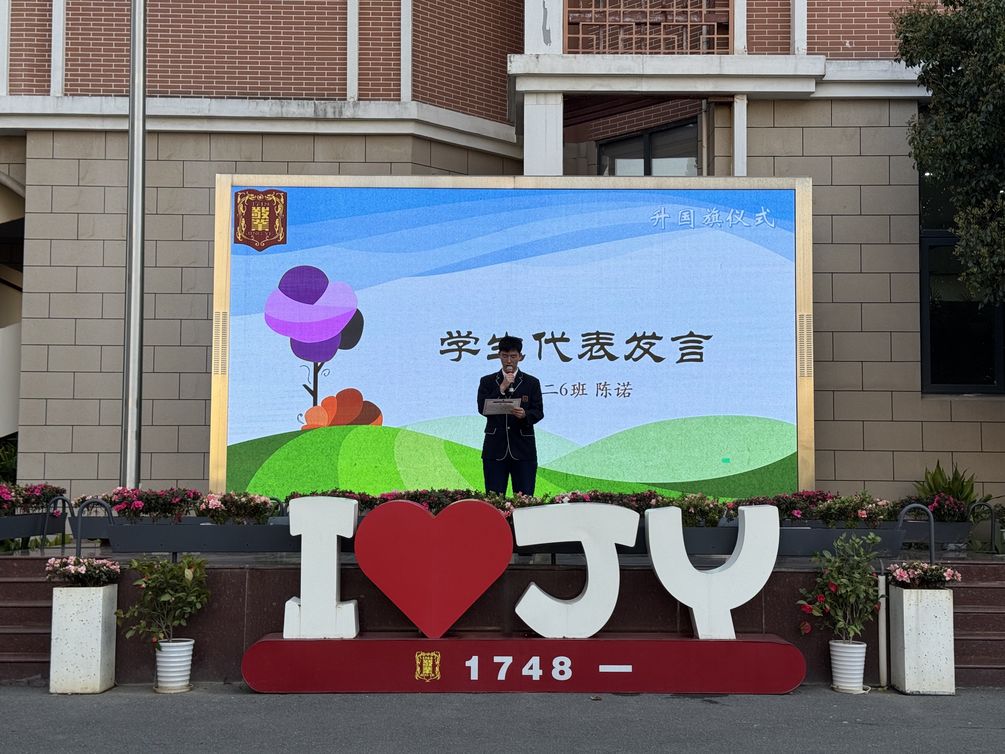 本次升旗仪式由高一2班的王梓伊、稽云同学主持,陈诺同学代表获奖同学发表感言,第二批“党建 ”青年教师成长营的顾佳贇老师以风趣又富有思辨的话语打破数学“难以亲近”的刻板印象,结合历史人物与π的故事,回顾了π日的文化背景和国际数学日的设立初衷,强调了数学在人类文明发展中的重要地位。今年的活动主题聚焦“数学与艺术”,顾老师带领大家欣赏了以彭罗斯密铺为灵感的主题海报,鼓励学生通过涂色、创作等方式参与到数学之美的探索中。