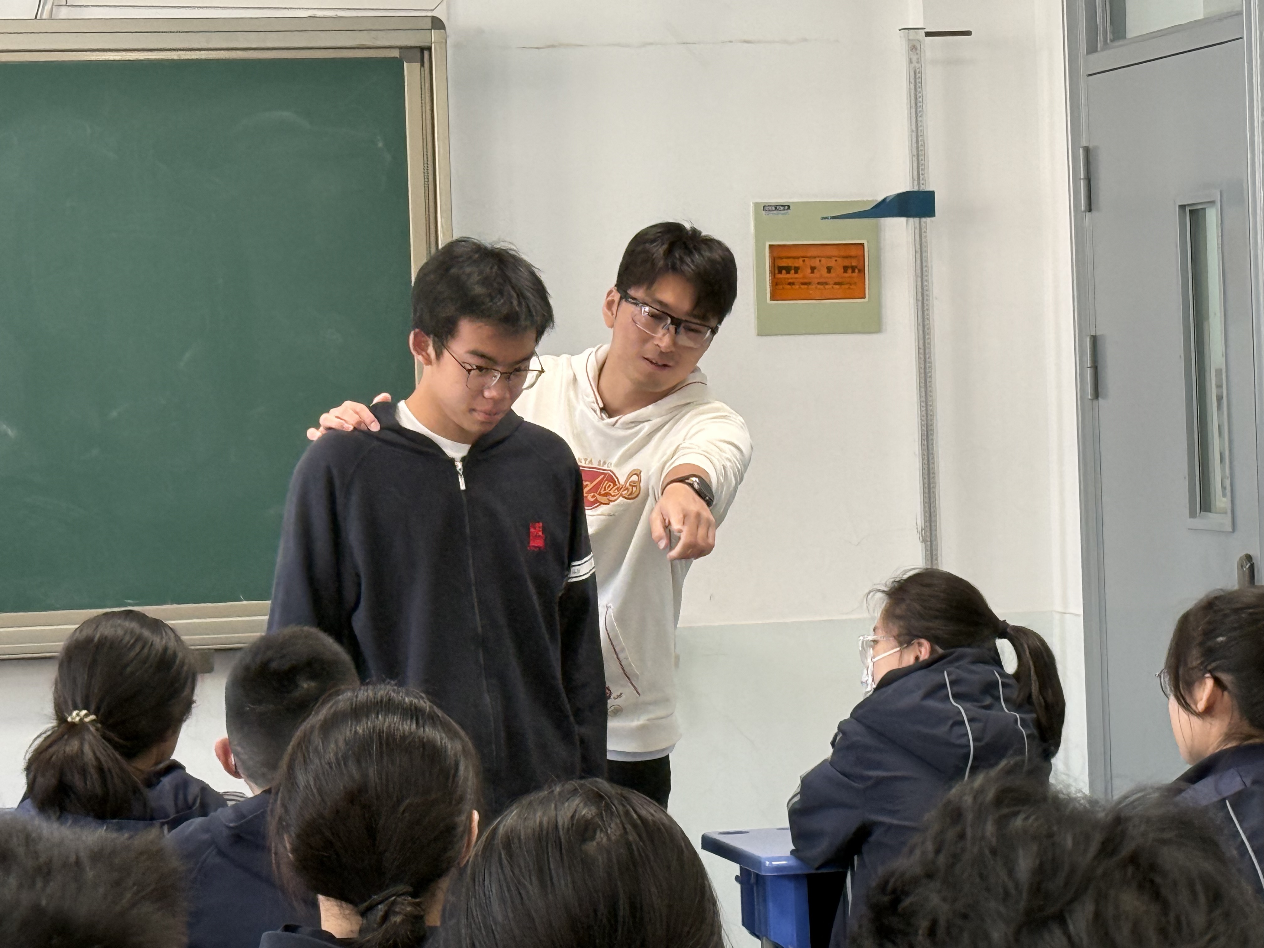 随后引入高速公路乘坐大巴车的各个事项。廖老师教导同学们安全带的正确使用方法、紧急逃生路线规划、逃生锤的使用技巧和乘坐时的规范。之后在景点游玩的安全事项中,廖老师介绍了在陌生的人群拥挤的室内场馆遇到拥挤人群时的应对方法,提醒同学们注意找寻逃生通道、空旷安全的地带和观察周围的人流,避免在拥挤的场所被人群撞到导致踩踏。