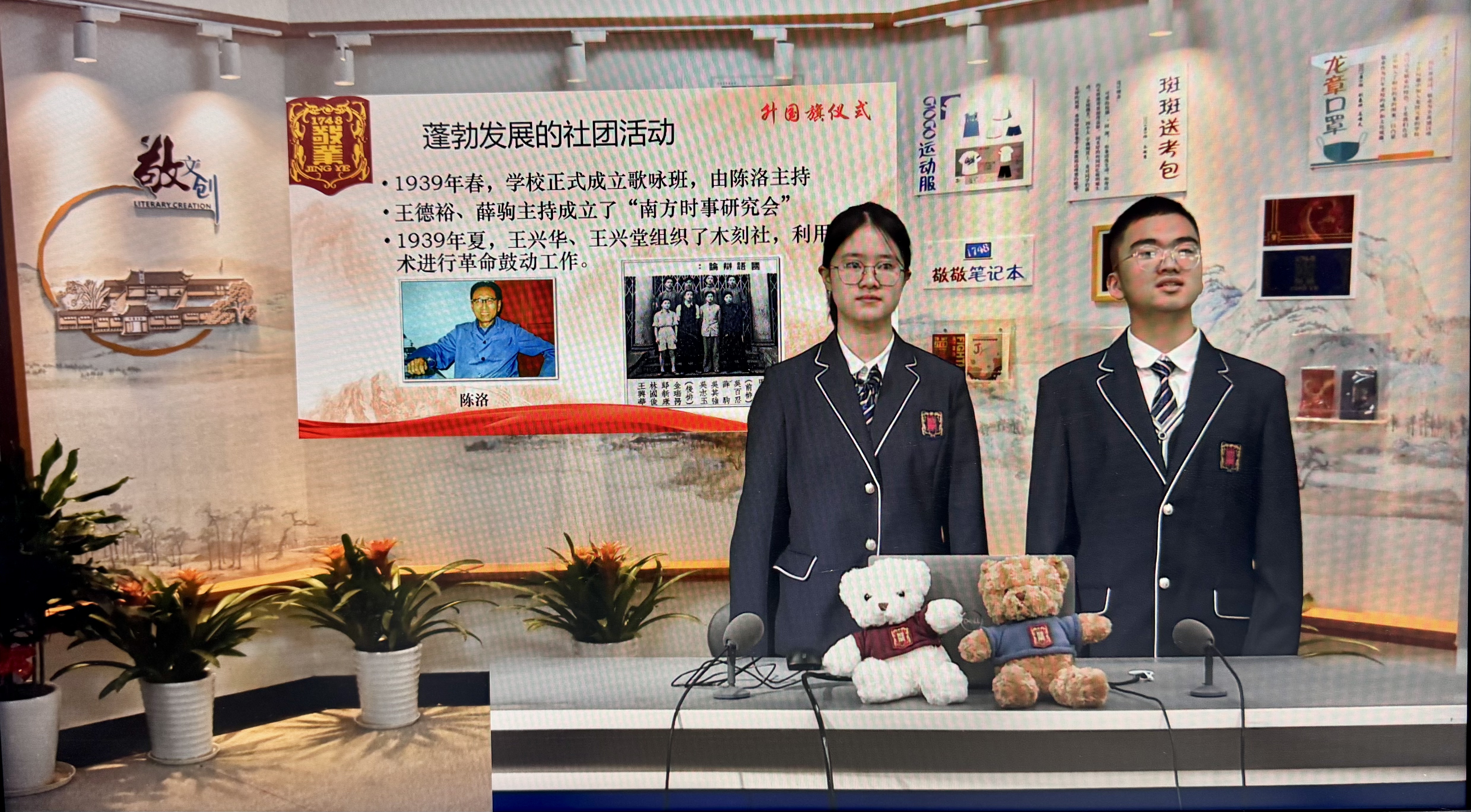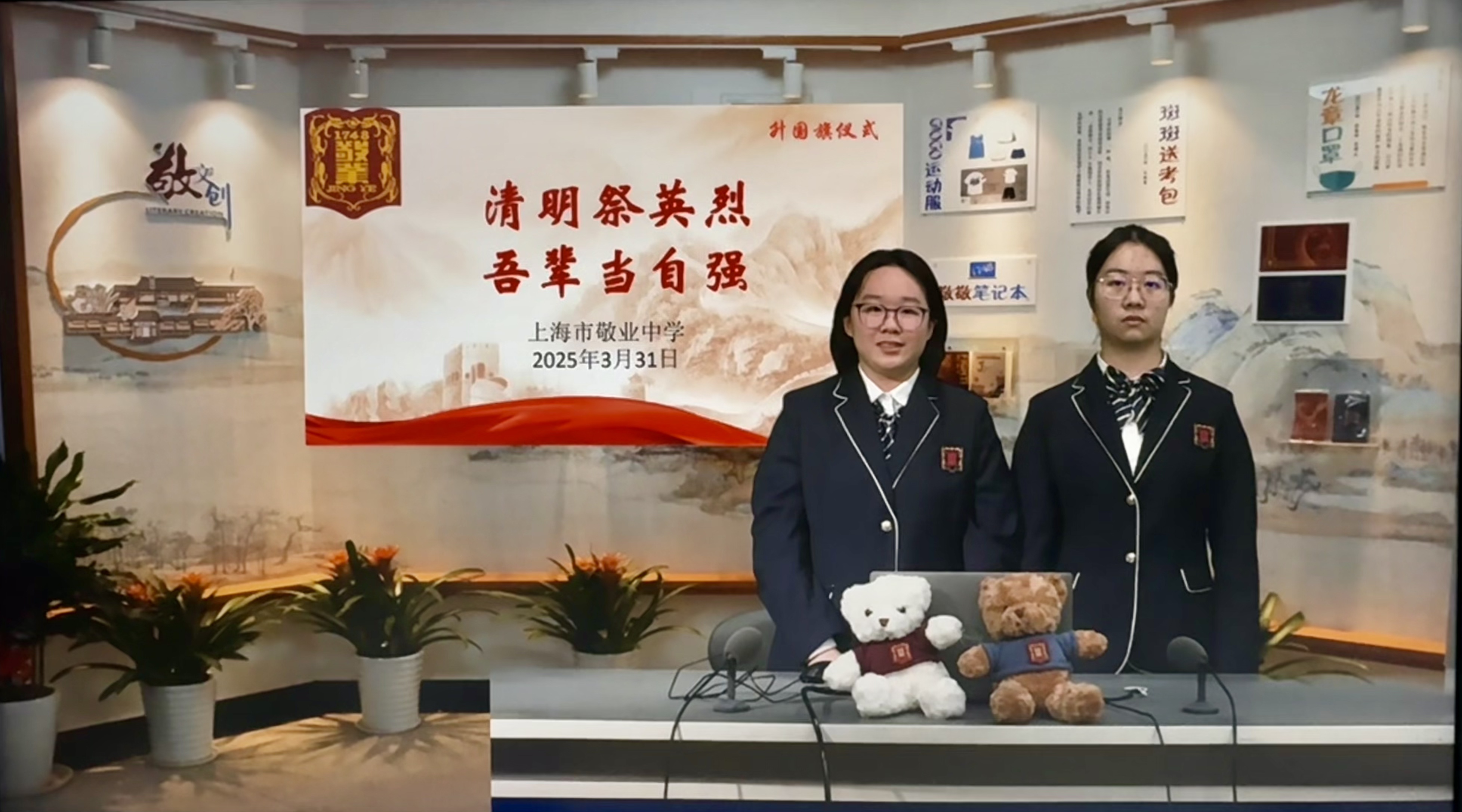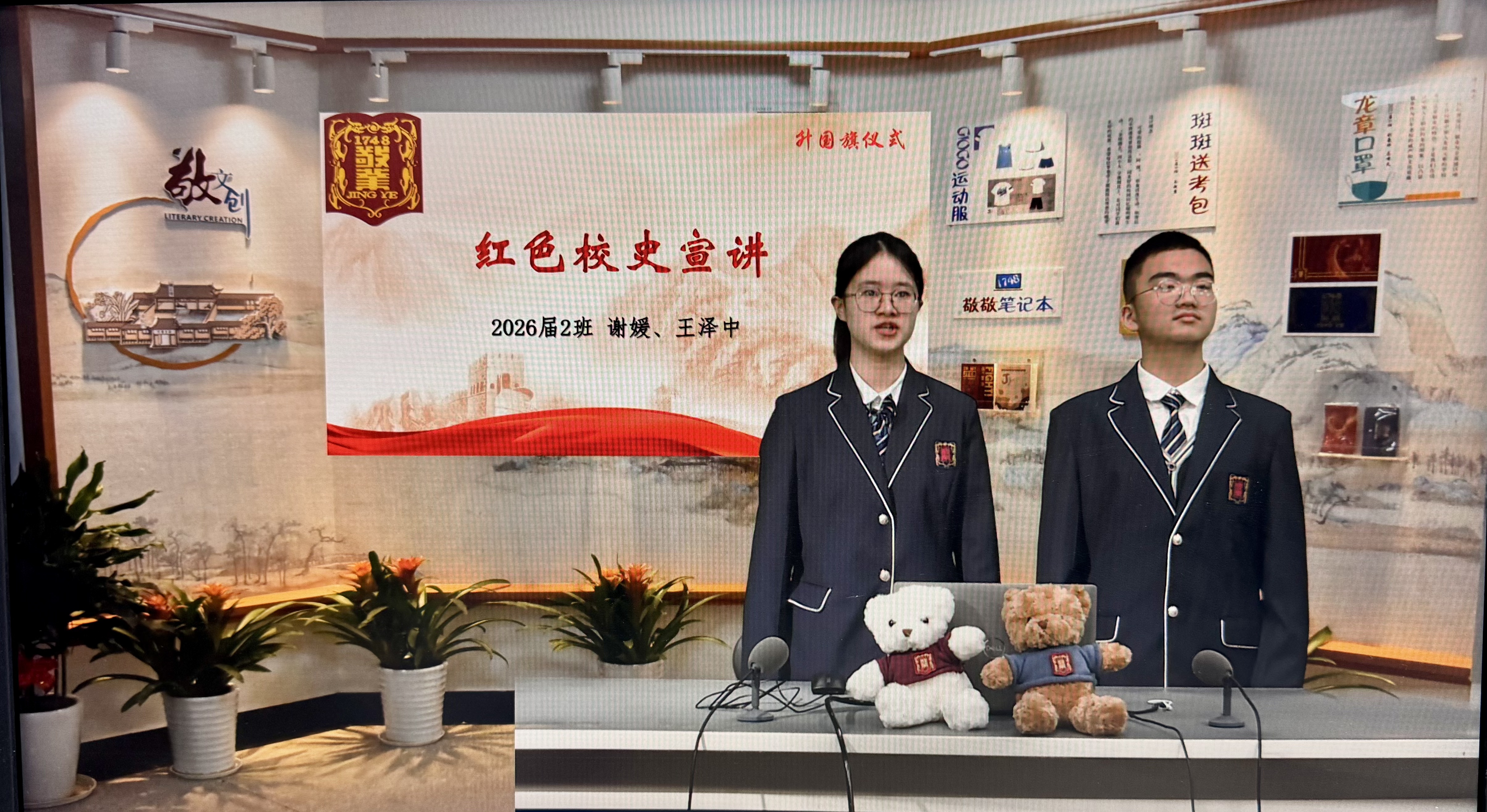 在仪式的最后,谢媛,王泽中同学为同学们特别讲述了敬业中学的光荣革命传统:1930年代,敬业学子投身抗日救亡。成立歌咏班传唱战歌,组建“南方时事研究会”以活报剧揭露汉奸行径。太平洋战争爆发后,地下党支部书记乔石带领师生创办“四维学社”,坚持“不当亡国奴”信念。1938-1945年间,29名学生党员中11人壮烈牺牲,最小年仅19岁。1945年抗战胜利,学校复名,红色血脉永续传承。