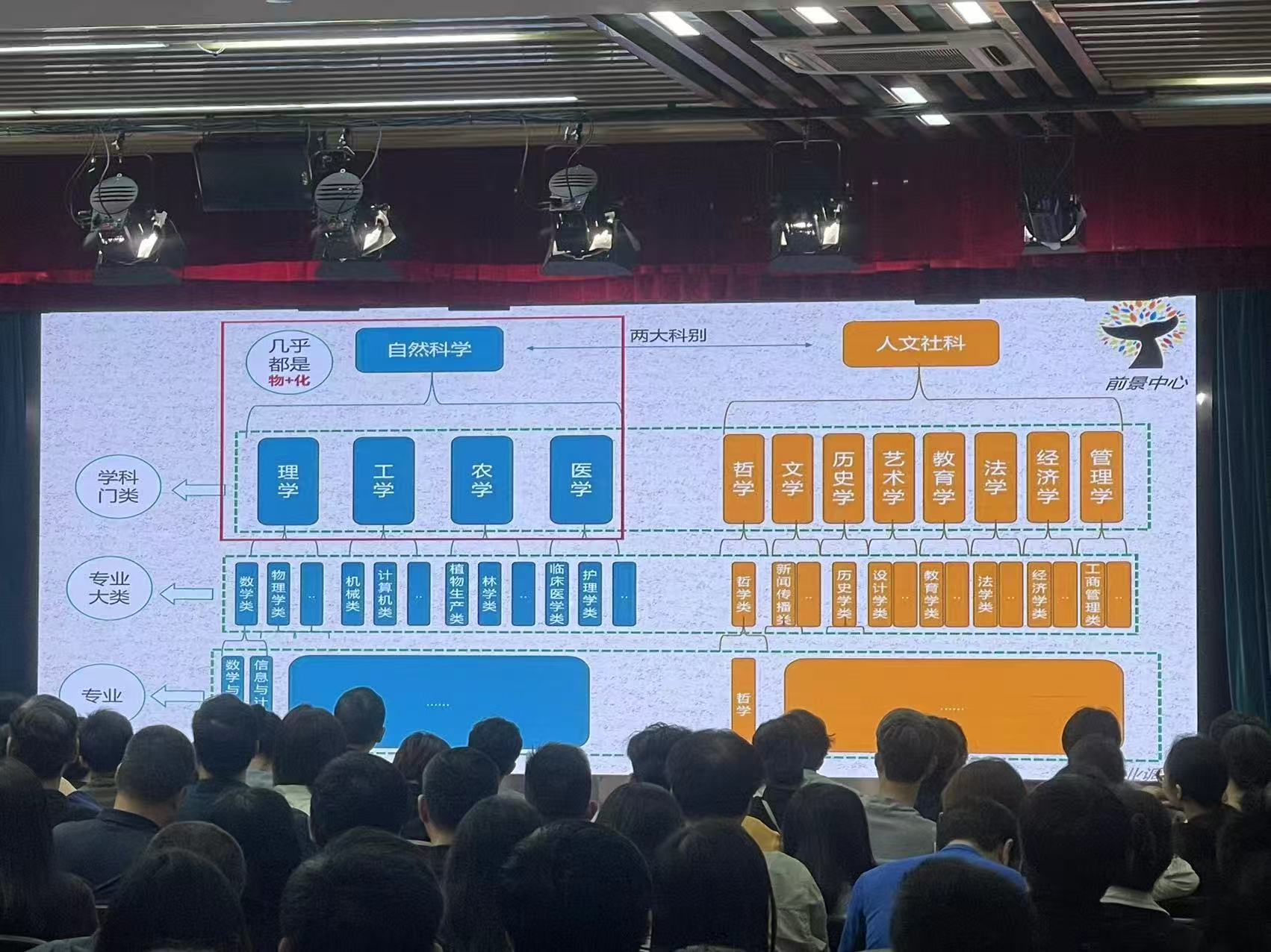 接着,来自前景生涯规划中心的颜倩倩老师就学生生涯规划进行详细介绍。通过中高考差异、高考各选科人数、高招政策等信息,以客观数据为支撑,为家长提供面向未来、有益学生身心健康的建议。随后,为家长介绍强基、综评等多种高招政策,便于学生及家长尽早开始规划,根据学生的不同优势选择不同的目标。