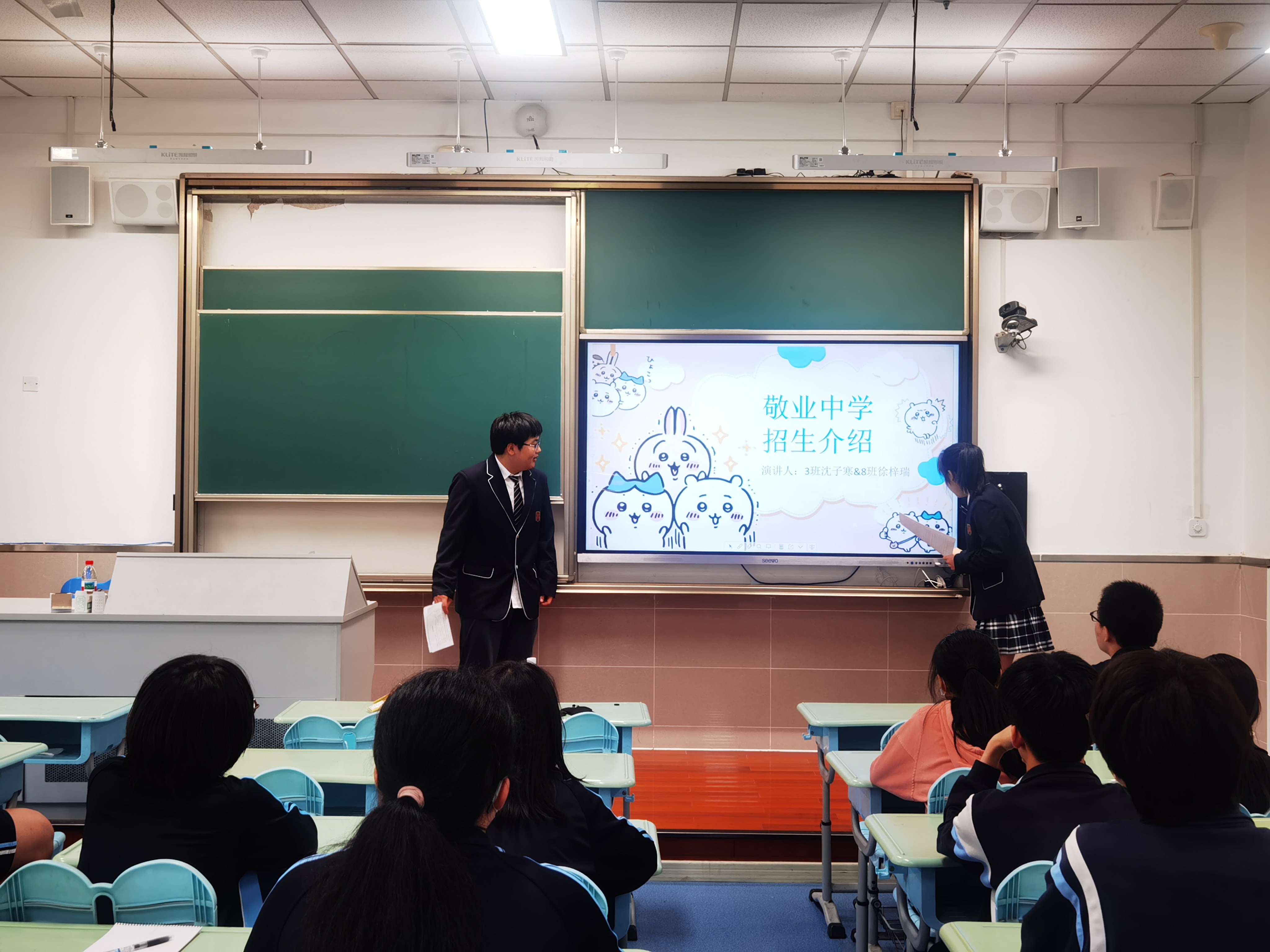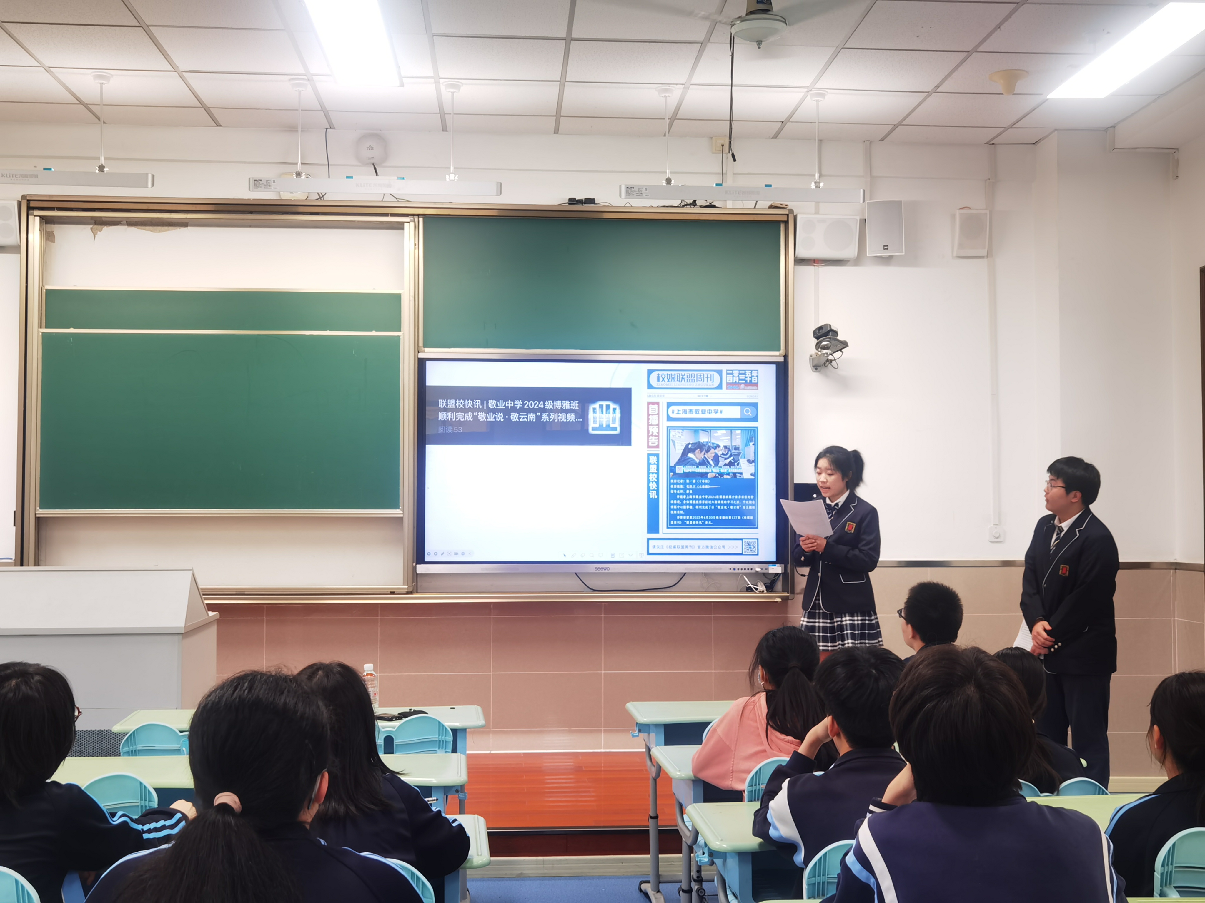 5月23日下午,2027届博雅班沈子寒和徐梓瑞两位同学以毕业生的身份来到了上海市民办立达中学,给初三的学弟学妹们带了了一场精心准备的学生座谈。