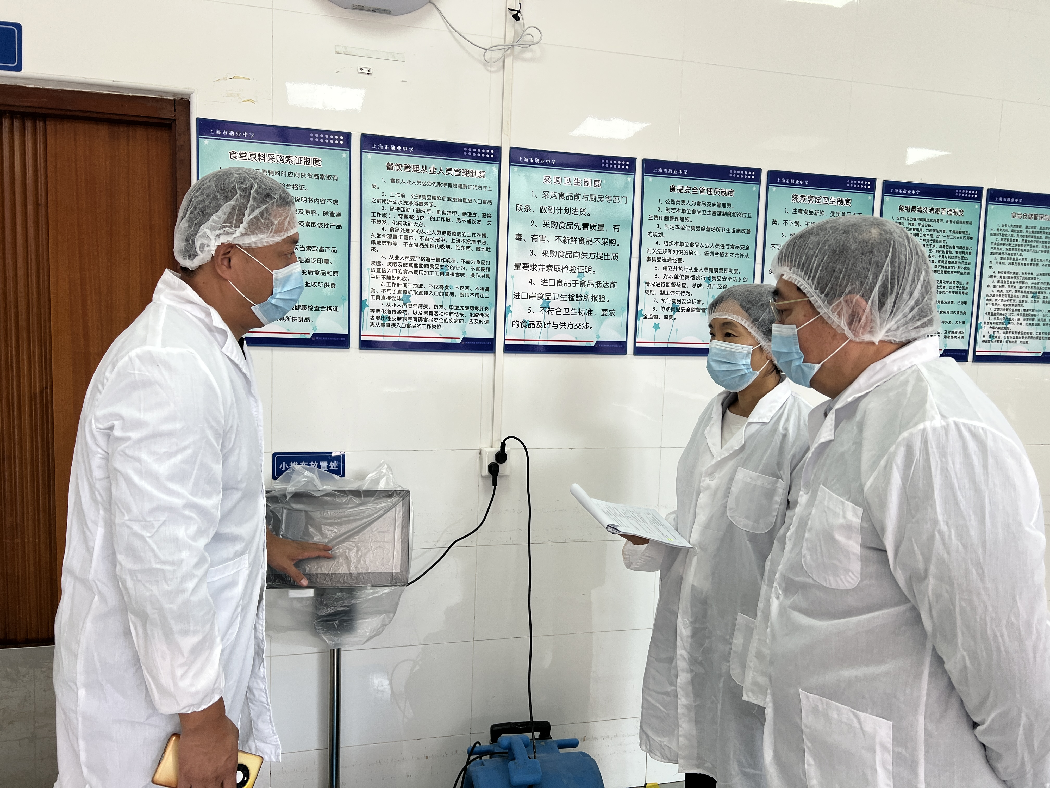 与会人员严格对照食品安全管理标准,从责任落实、流程规范、设施配置等方面展开全面检查。工作组深入食堂操作间、专间、仓库、就餐区及周边区域,重点核查食材溯源、存储、加工流程、设备运行及卫生维护情况,针对前期整改成效进行“回头看”,并对新发现的问题现场提出改进意见。校长强调:“食品安全无小事,必须坚持‘零容忍’态度,以常态化检查促长效化提升。”