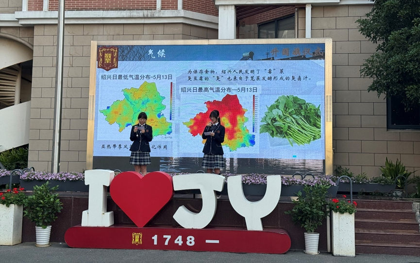早在4月,高二年级学生前往绍兴开展研学活动。5月,同学们以“行走水乡绍兴,探究地理密码”为主题,继续深入研究,努力挖掘绍兴众多生产生活特色背后隐藏的地理智慧。5月26日,学校举行了一场以地理学科活动为主题的升旗仪式。