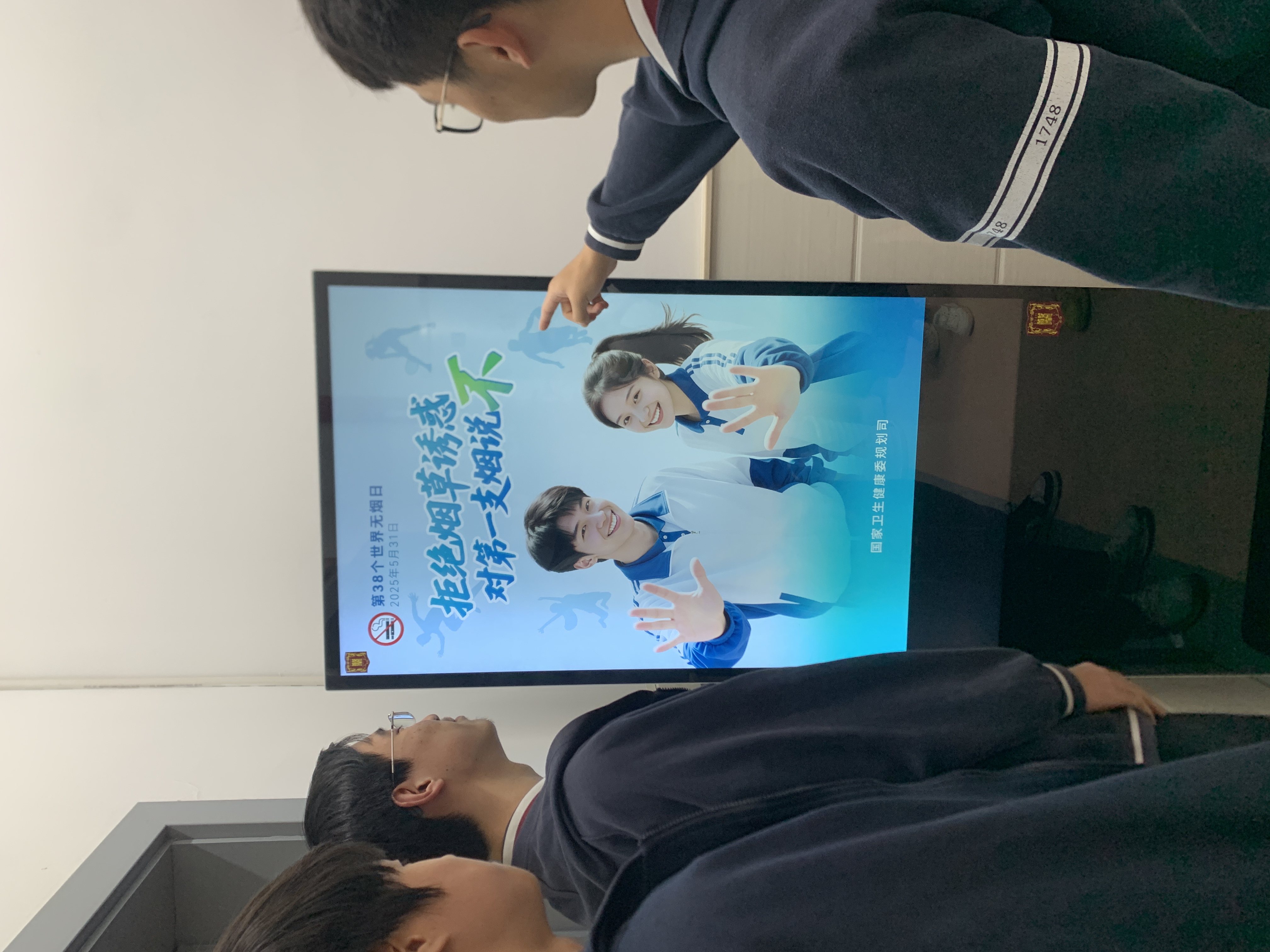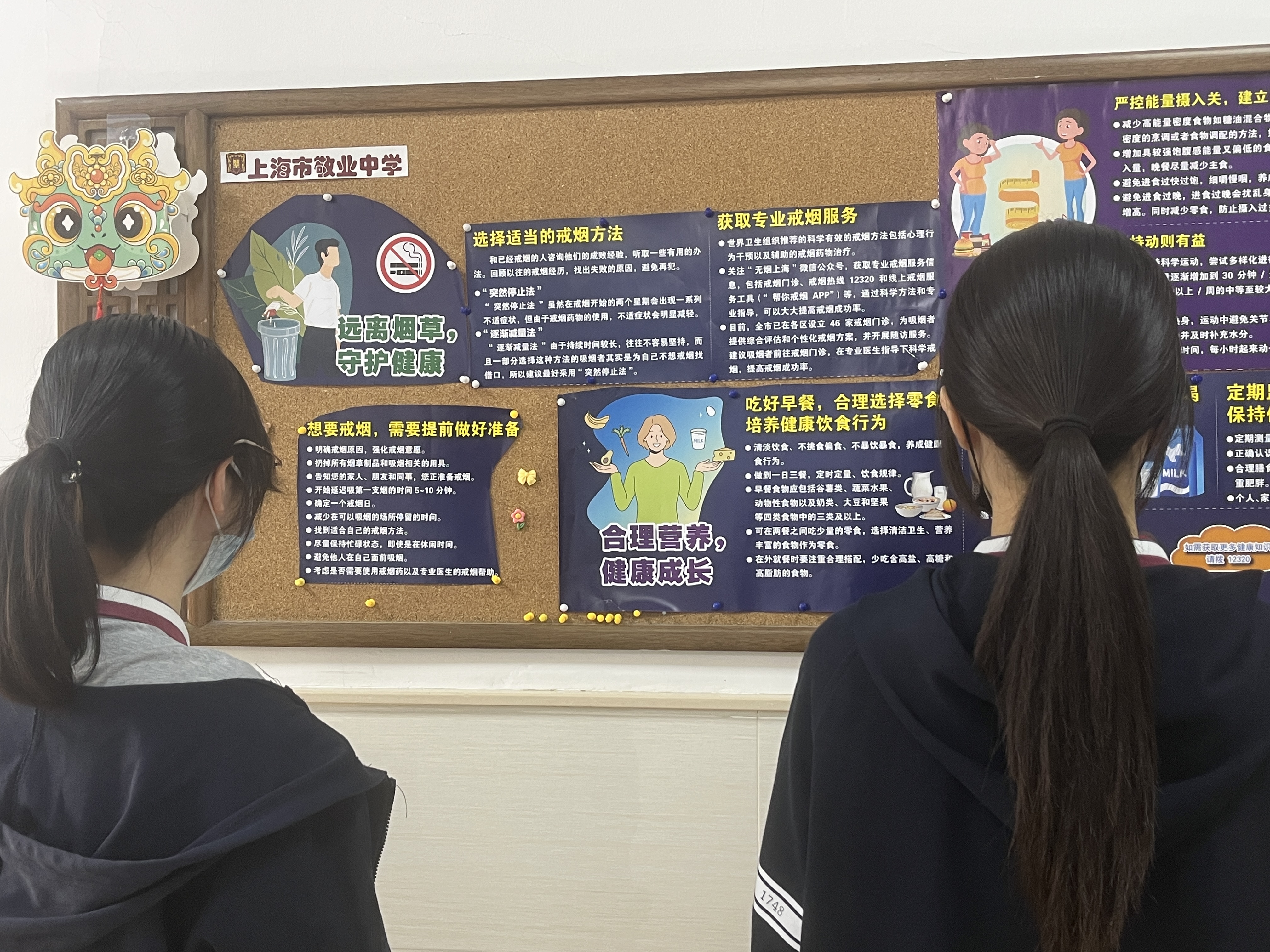 敬业中学积极响应,于5月30日由校保健室发起控烟宣传及签名活动。活动通过宣传栏、电子屏幕等形式科普烟草危害,强调:烟草烟雾中含有7000多种化学成分,其中数百种为有毒有害物质,至少70种为致癌物质;吸烟会严重损害青少年呼吸系统和心血管系统,并且会加速其成年后慢性病的发生;电子烟会对青少年的身心健康和成长造成不良后果,同时会诱导青少年使用卷烟甚至依赖成瘾;开始吸烟的年龄越早,吸烟量越大,烟草对身体造成的危害也越严重。