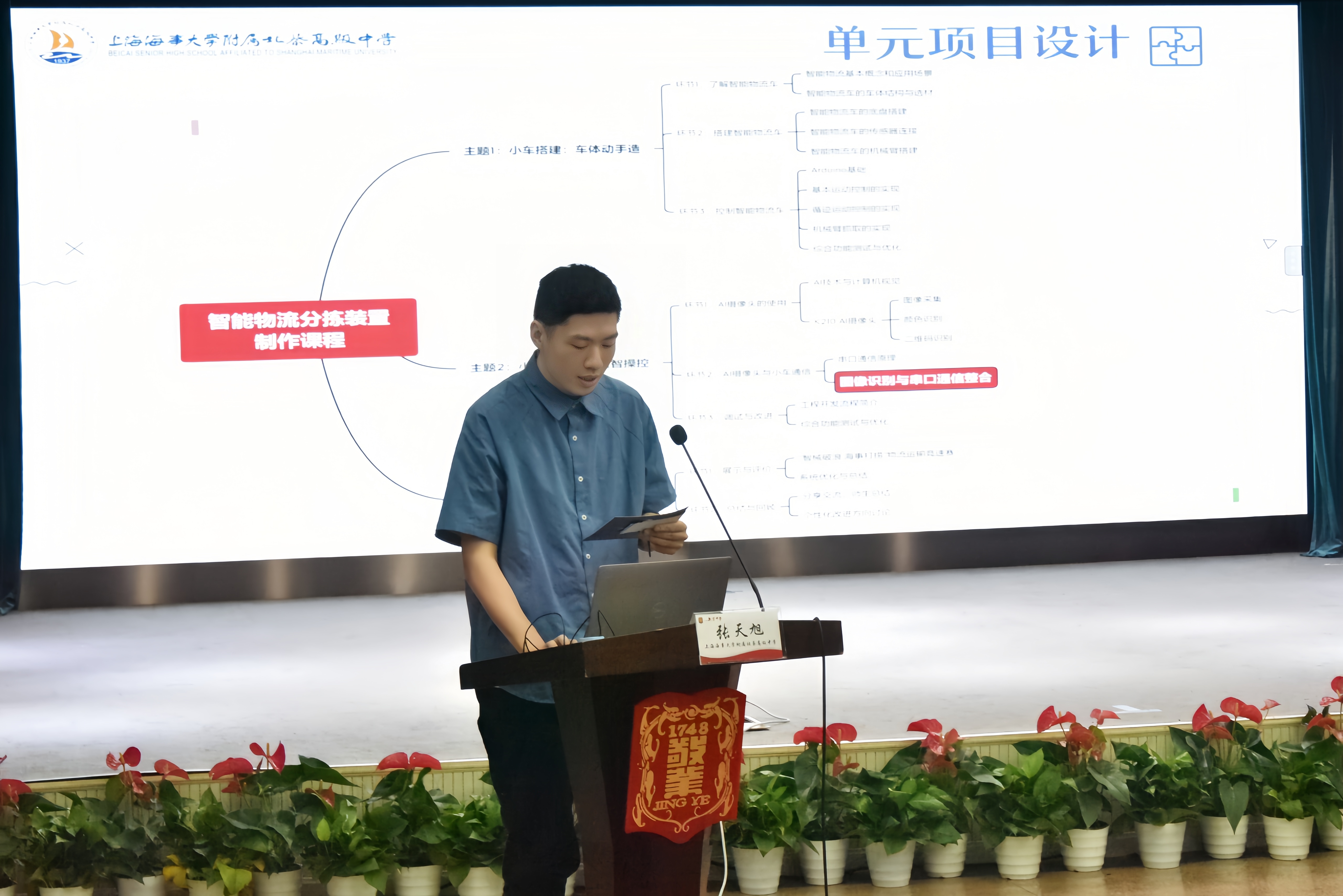 上海海事大学附属北蔡高级中学刘雅丽老师系统介绍《智能物流分拣装置制作》课程的开发背景、实施流程及实践成果。该课程以“航海文化特色 ai技术 项目式学习”为核心,围绕实际港口物流分拣场景,融合信息技术、通用技术等多学科知识,致力于提升学生的工程素养与创新能力。通过引导学生自主搭建机械臂智能小车,整合k210 ai图像识别、自动控制及物理结构组装,课程展现真实工程情境下复杂问题的解决路径。 随后张天旭老师以《基于ai图像识别的物流小车运动抓取功能测试》一课为例,详细展示教学环节。学生通过ai视觉识别控制机械臂抓取物体,借助串口通信实现小车精准运动控制。张老师讲解教学目标、编程调试及项目驱动下学生在真实情境中发现问题、迭代优化的过程,体现“以赛促学”“项目带动”的教学策略。演示环节中,学生自研的智能物流小车运行稳定、视觉识别准确,充分彰显课程的工程深度和学生的实践能力。