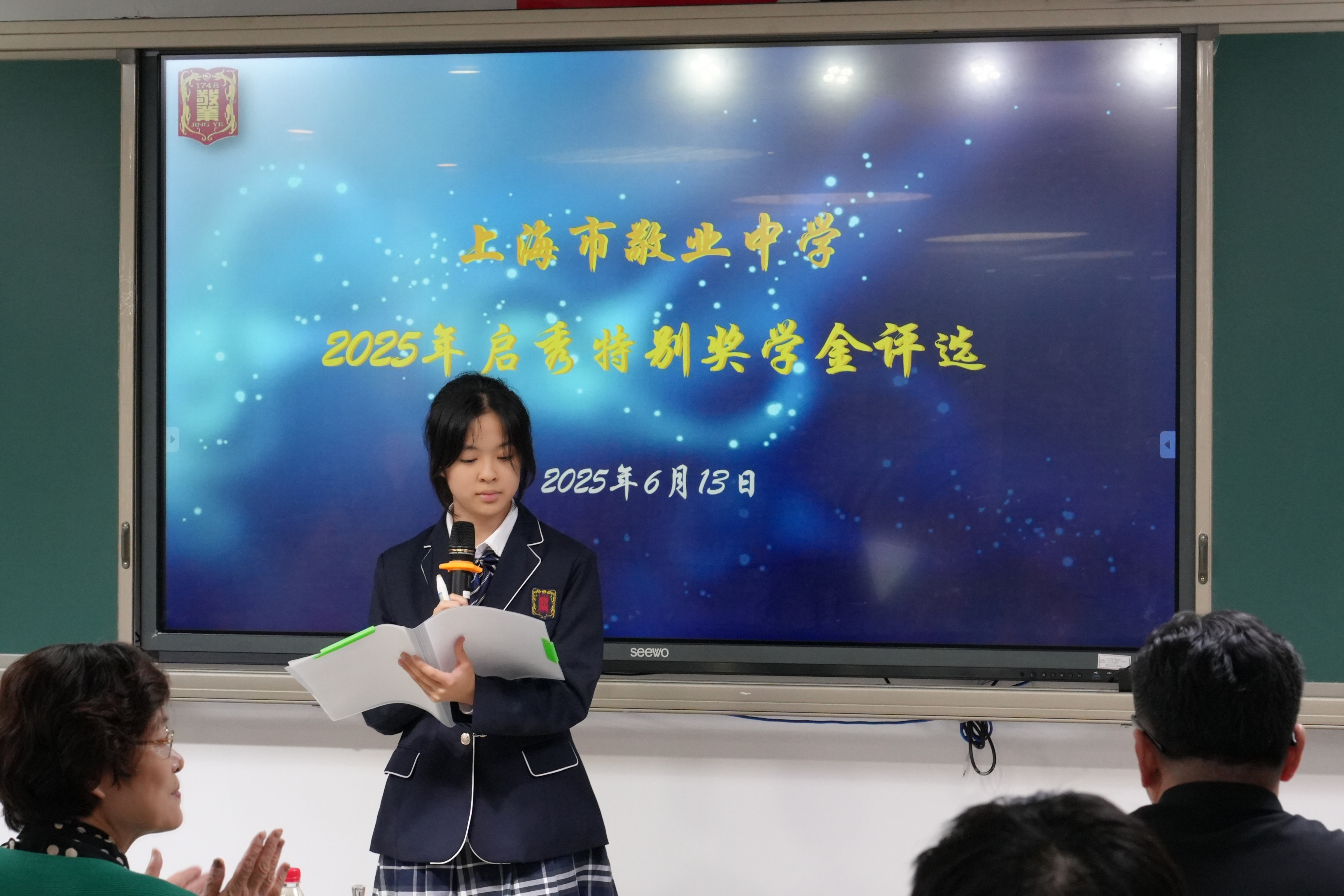 一年一度的启秀特别奖学金评审,不仅是对优秀学子过去努力的认可,更是对他们未来在科技科创方面发展的殷切希望。评选的活动也为同学们提供了交流学习、相互鼓励的平台,进一步营造了敬业校园崇尚科学、勇于创新的浓厚氛围。候选人自我介绍环节之后,来自高一高二的16个班级,以及10位现场评委、10位候选人进行了不记名投票,将以一定占比纳入启秀特别奖学金评选委员会的终评参考。最后,钱韫辉校友对同学们在科创方面取得的成绩表示了祝贺,并鼓励敬业学子们奋发有为,将自己的未来与兴趣连接起来,在人生道路中成就个人梦想、推动行业进步!启秀特别奖学金的评选结果将在2025年9月教师节的庆典公布。