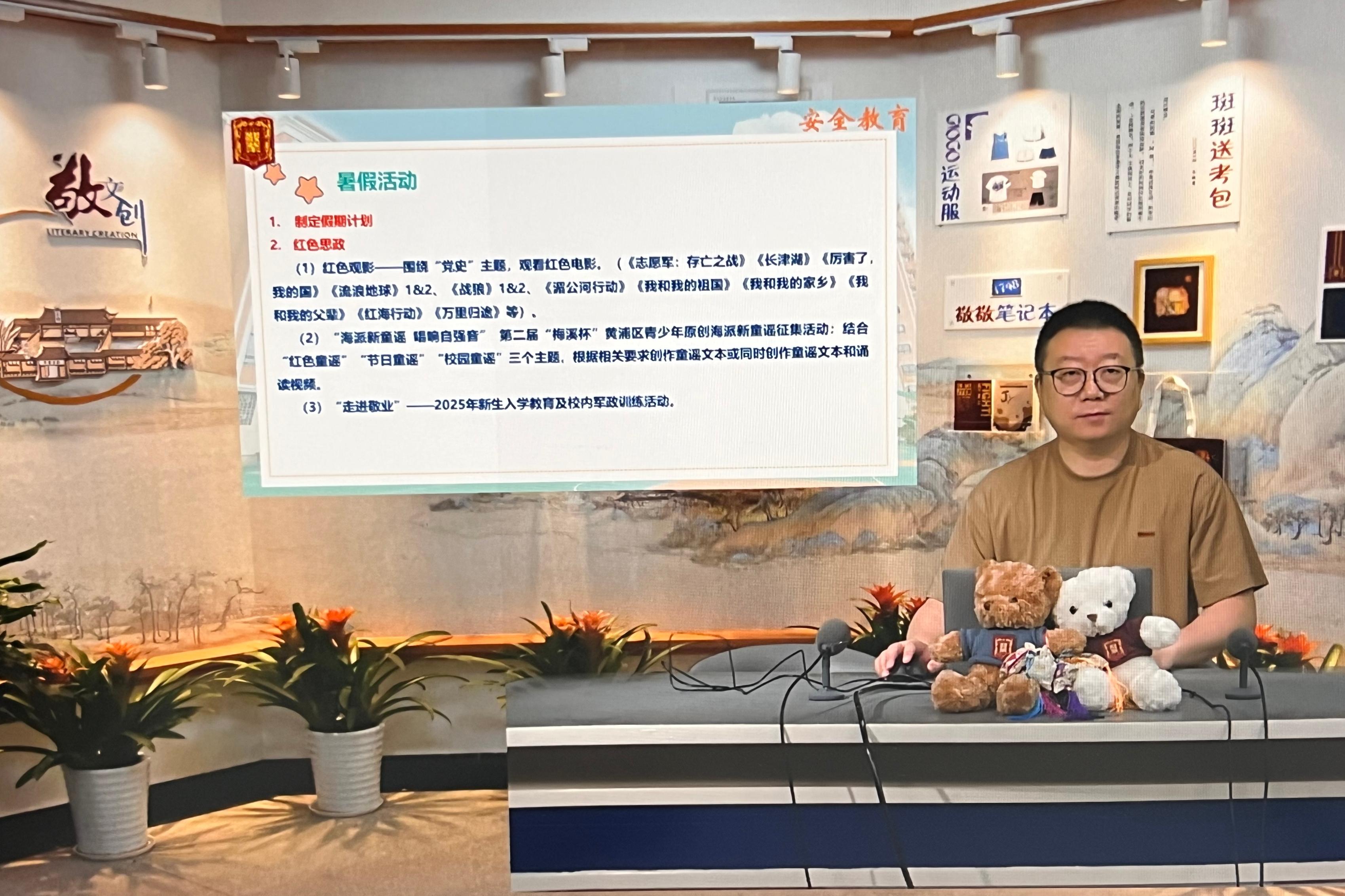 最后,崔老师为大家介绍了本次假期中各项主题实践活动的安排,如:“红色思政系”系列的“海派新童谣 唱响自强音” 第二届“梅溪杯”黄浦区青少年原创海派新童谣征集活动等;“研究学习”系列的“嘉定一中杯” 上海市实验性示范性高中主题征文活动、“智阅流光 慧谱星穹”星阅读活动、第八届未来媒体人创意实践活动、2025年健康主题·近视防控考察报告活动等;“实践体验”系列的“时间管理达人挑战赛”以及根据2025黄浦区社会实践护照积极参与社会实践活动等。崔老师鼓励同学们积极参与,在实践中增长见识、锻炼能力,为新学期积蓄能量。