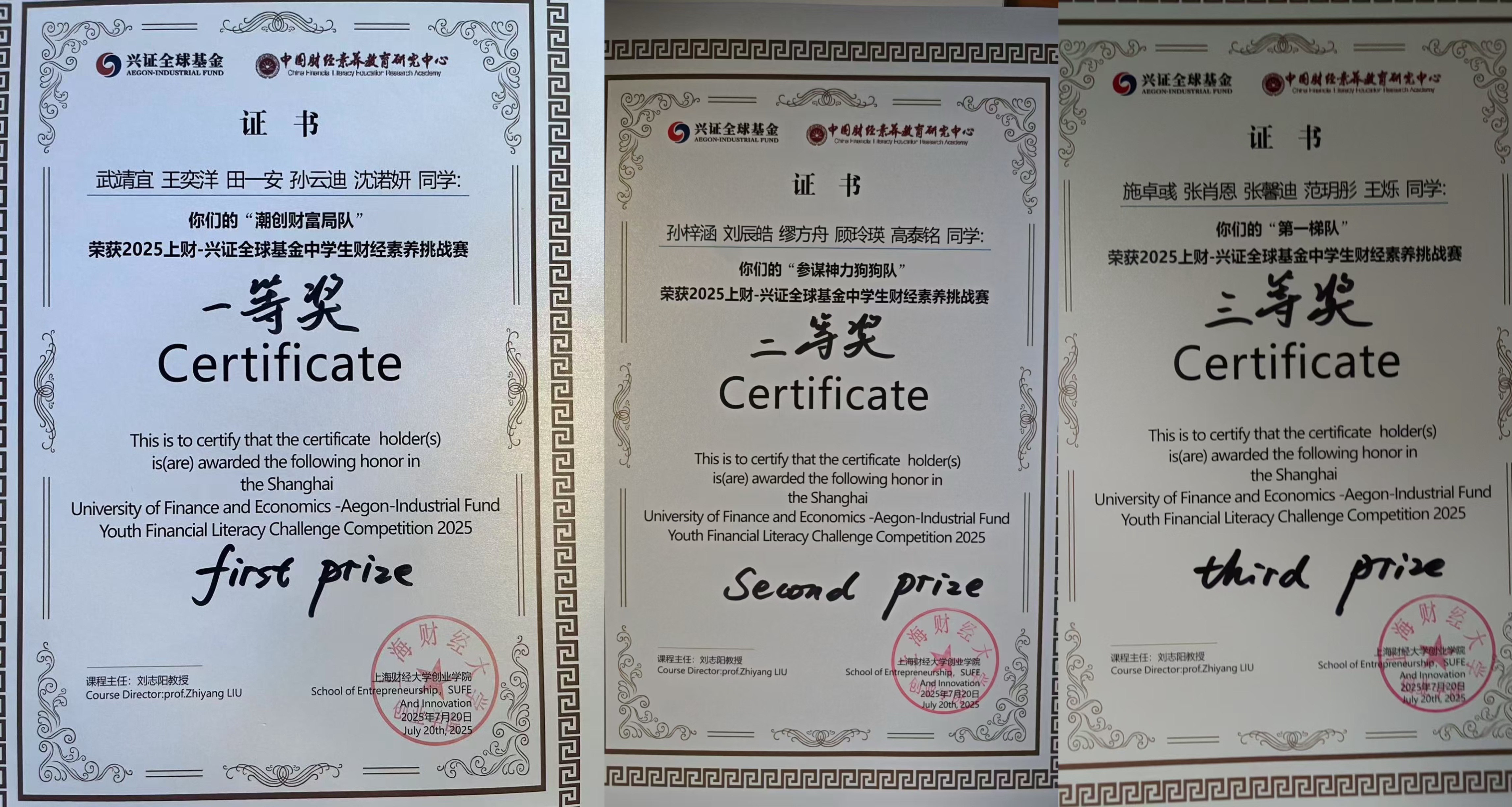 结营时刻的才艺展示五人也一同上台歌唱敬业校歌,把敬业带到财大,为这段充实旅程画上闪耀句点。同时在项目路演中敬业学子分获一、二、三等奖的荣誉,并获得由财大颁布的结业证书,武靖宜同学荣获优秀营员这一奖项。