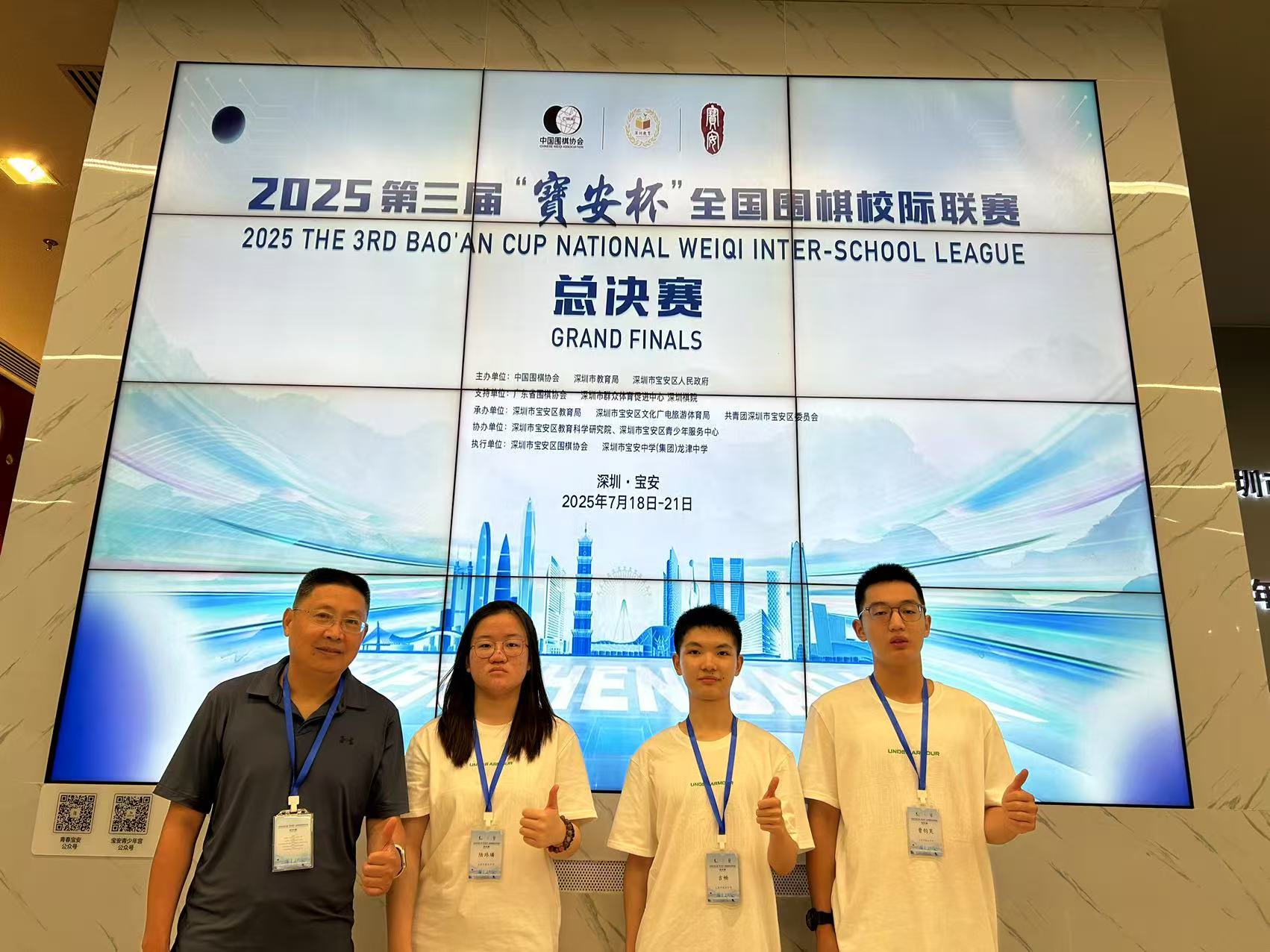 2025年7月18日至21日,我校围棋队教练黄浒老师率领队员曹钧昊、吉畅、陆玮璘,一行四人赴深圳参加了2025年宝安杯全国围棋校际联赛。