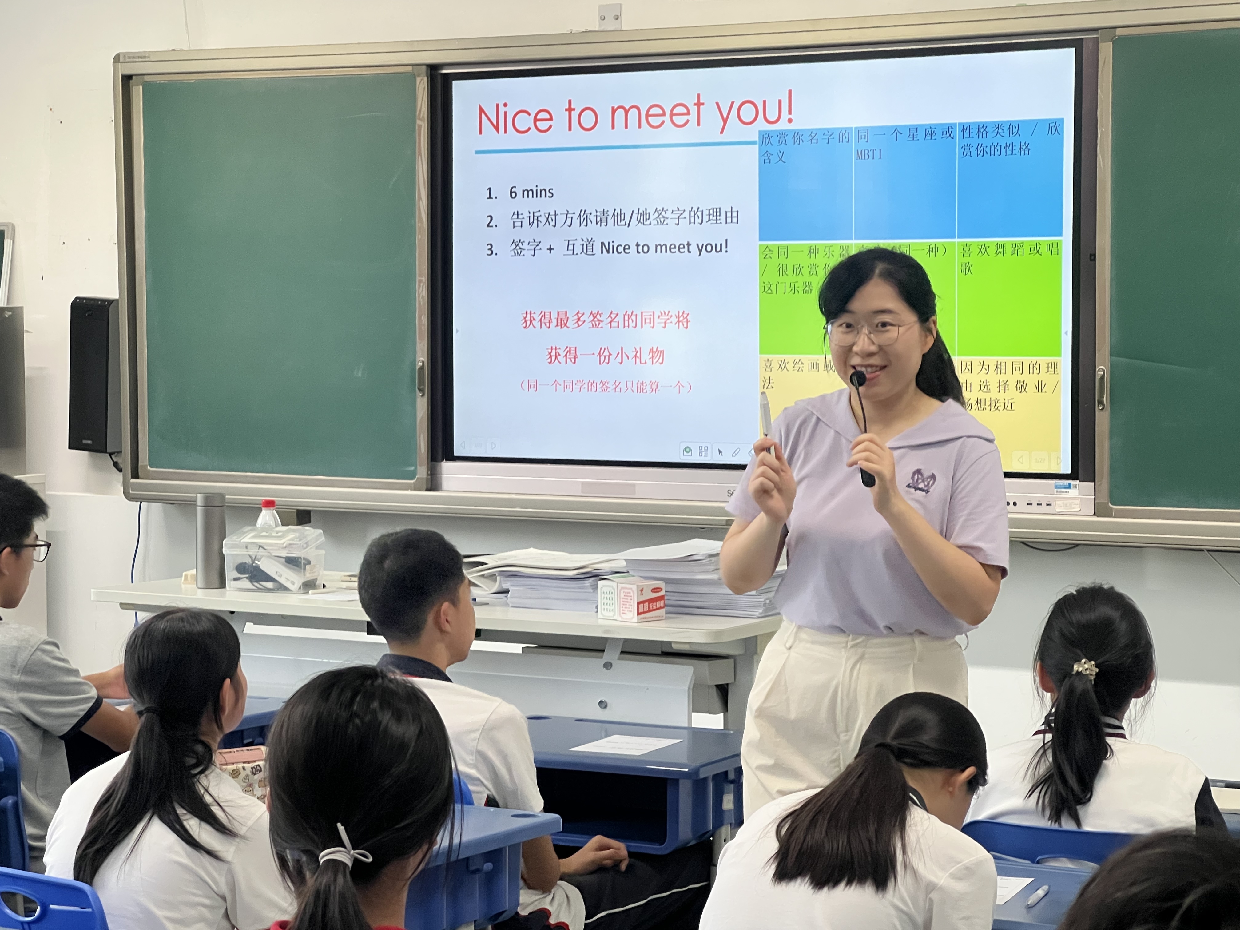 下午13时,教学楼迎来朝气蓬勃的新面孔,各班陆续开启了首次面对面交流。1班通过“九宫格”兴趣填写并交流的游戏促进了同学之间相互了解,营造了温暖与有爱的集体氛围;2班以小组的形式,通过组内相互介绍,再推举一人向组外成员介绍自己及组内成员,另外有三位同学做了简单的班委竞选演讲,班集体的建设初具雏形;3班的同学用姓名接龙,解锁彼此的mbti、梦想与书单,此外也写下了各自的时间锦囊,致敬2028年的自己;4班通过“破冰bingo”趣味互动,促使同学们快速发现彼此兴趣爱好,建立联系;5班则是通过“寻人启事”“觅知音卷轴”及“倾听与对话”的方式帮助同学们从相互认识再到深度交流;6班的同学通过扑克牌随机分组,先组内相互认识,而后上台介绍彼此,大家踊跃分享了自己的兴趣爱好;7班的“nice to meet you”活动迅速破冰,大家在聆听其他同学的介绍时尽可能找到彼此的共同点或是对方的闪光点,随后在九宫格的相应位置获得对方的签名并互道一句“nice to meet you”,完成自我初印象展示,加深对彼此的了解;8班的同学被划分成了不同的颜色群组,在各自的群组内进行了真诚的自我介绍,描绘理想中最美好的自己,为青春勾勒轮廓。除认识彼此之外,各班班主任还借此契机与同学们共商班风建设,制定班级公约。