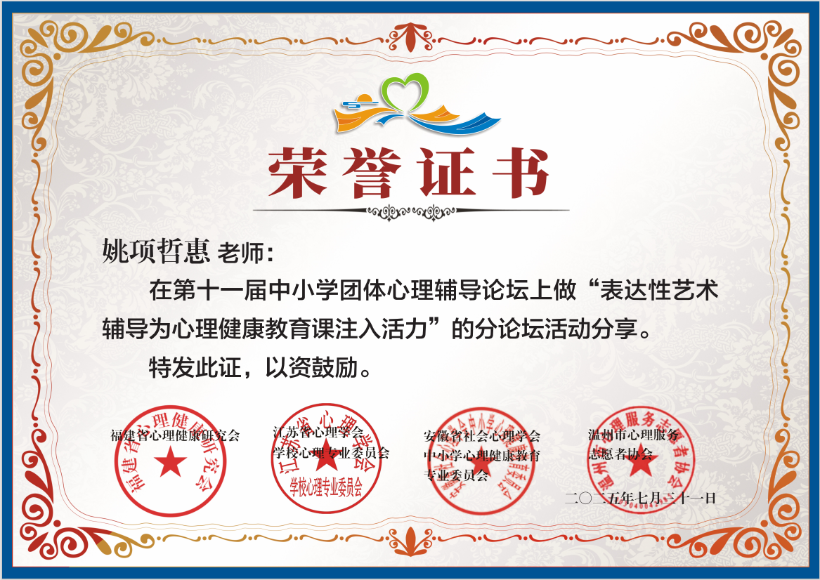 7月29日至7月31日,第十一届中小学团体心理辅导论坛在厦门市金尚中学隆重举行。本次论坛以“融合・创新・发展:构建心理健康教育新生态”为主题,聚焦心理健康教育领域的热点问题,吸引了全国20多个省市的心理教师和心理服务工作者参加。我校心理教师姚项哲惠受邀出席论坛,并在分论坛中做主题发言《表达性艺术辅导为心理健康教育课注入活力》。