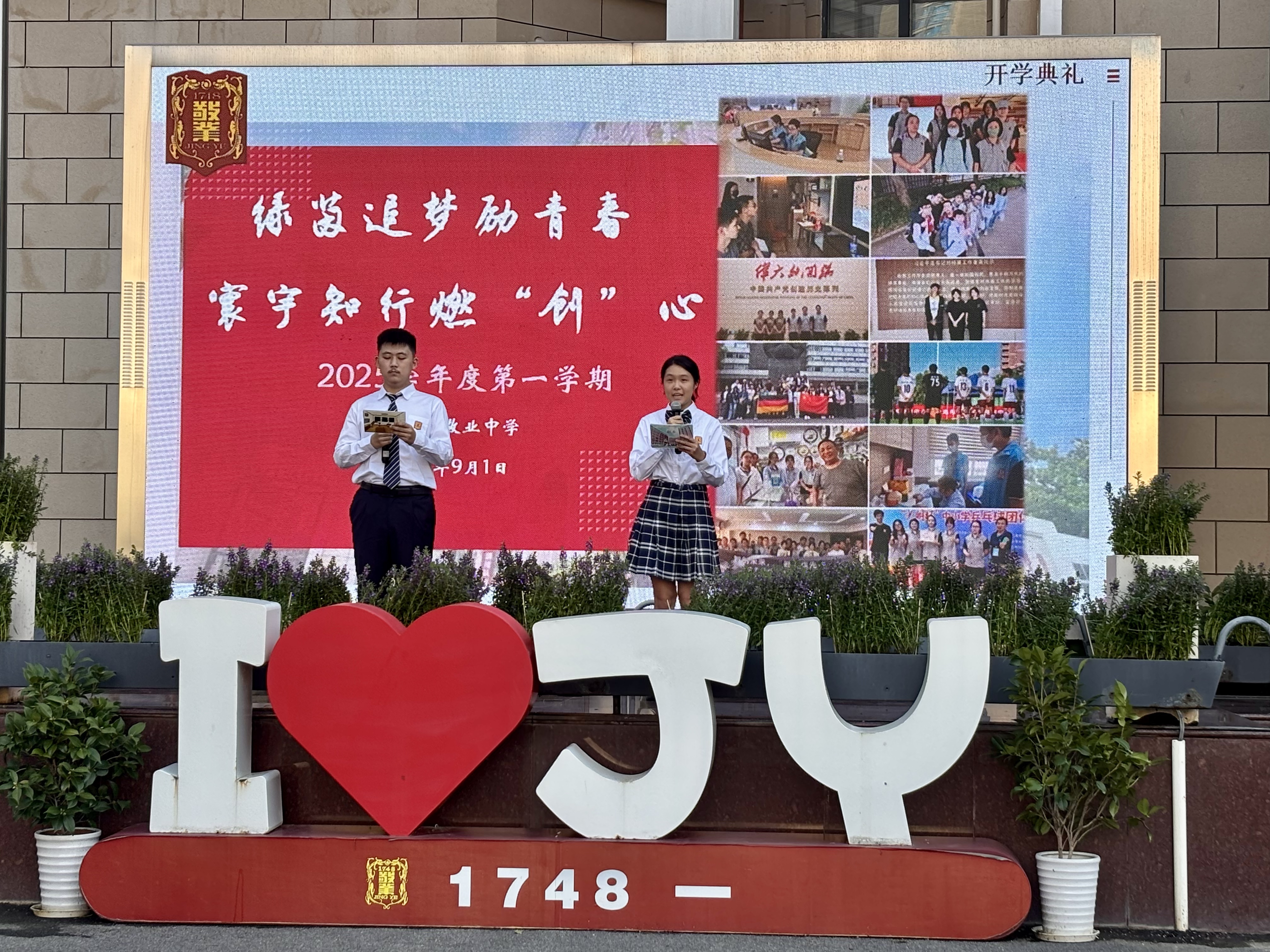 2025年9月1日,上海市敬业中学隆重举行以“绿茵追梦励青春,寰宇知行燃‘创’心”为主题的新学期开学典礼。典礼在学生主持人昂扬的开场中拉开帷幕。他们回顾了刚刚过去的这个充实而精彩的暑假:校足球队如同一匹黑马,在市级足球赛中顽强拼搏、创造历史,勇夺佳绩;校游泳队远赴昆明进行高强度集训,在碧波中锤炼意志;围棋社的队员们在国家级比赛中运筹帷幄,落子无悔,尽显智慧锋芒;戏剧社成员走进专业剧场,沉浸于艺术的殿堂,感悟家国情怀与文化传承。此外,众多同学积极参与社会实践与志愿服务,以行动传递温暖;更有部分学子远赴德国,在跨文化交流中拓展国际视野,展现了敬业学子的卓越风采。