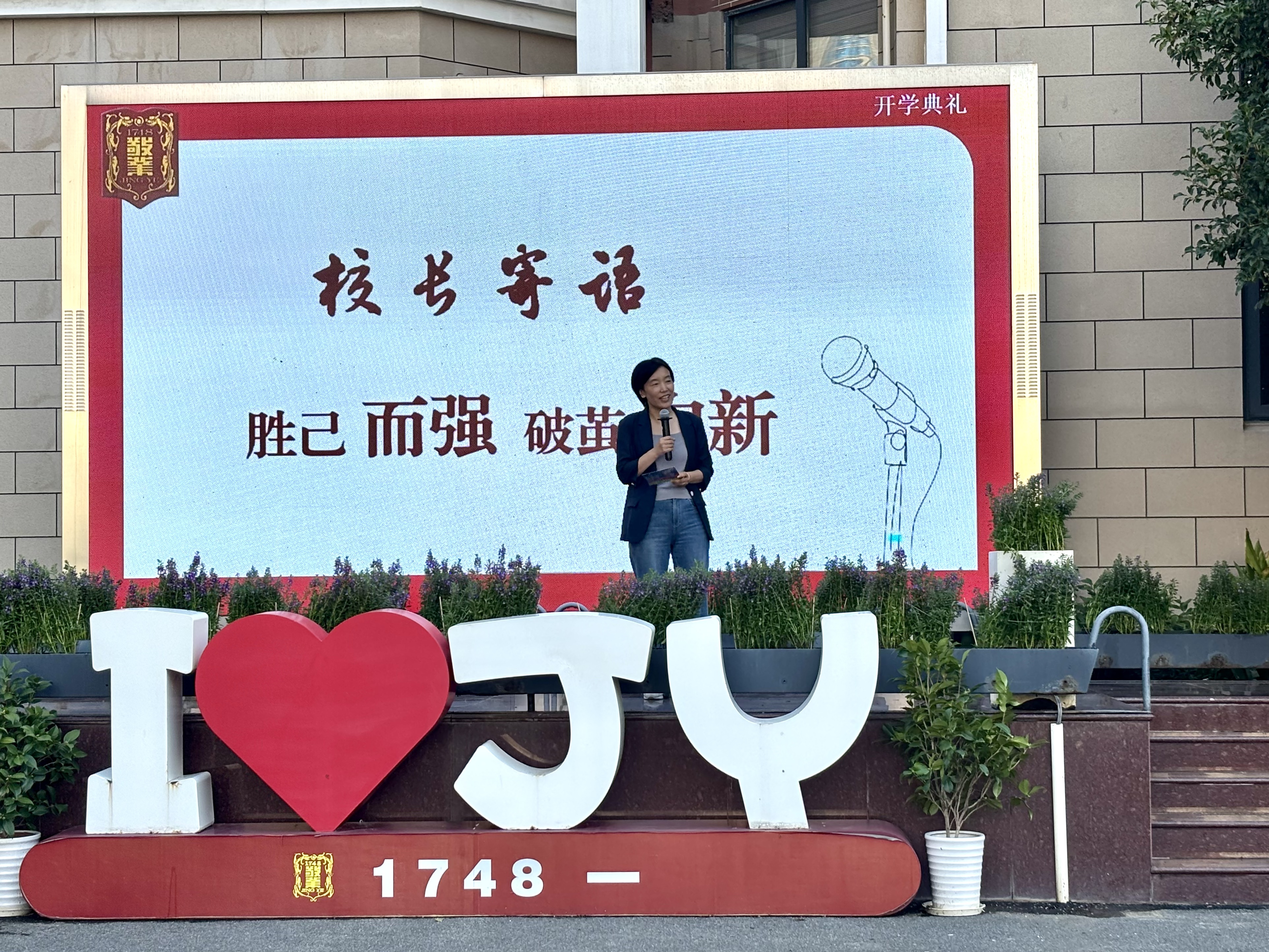 在庄重的气氛中,张丽霞校长发表了热情洋溢的新学期致辞。她首先代表学校向全体师生致以新学期的美好祝愿,并特别欢迎新加入敬业大家庭的老师和同学。张校长高度肯定了上一学年全校师生共同努力所取得的丰硕成果,指出同学们在各类学业考试与综合素质发展中均实现了可喜的进步与突破。围绕“胜己而强”这一核心主题,张校长对同学们提出了新学期的殷切期望。她强调,“胜己而强”,首先要强在严格自律,要战胜每一个分心的念头,让自律成为敬业精神最生动的体现;其次要强在自我超越,要勇于挑战自己的舒适区,在不断突破中实现成长;最后要强在坚韧不拔,要学习校足球队十年磨一剑的坚守,坚信每一次逆转都始于绝不放弃的决心。