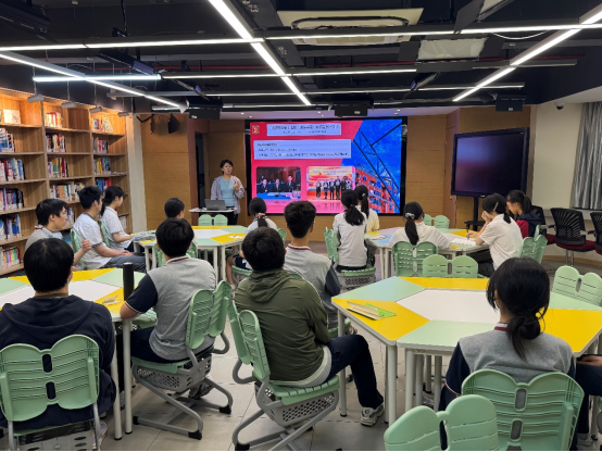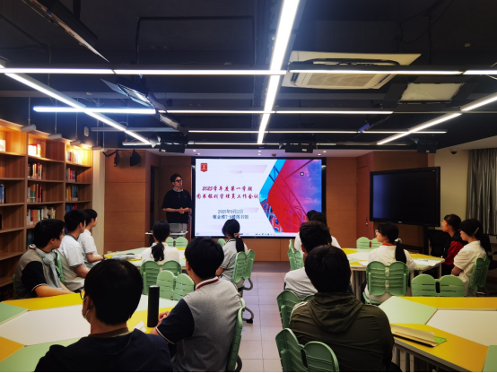 孙老师向同学介绍了图书馆的注意事项、工具使用技巧和管理员的工作内容及后续的一系列工作要求,并介绍了寒暑假期间校内外丰富的读书活动。袁老师则以学校“读懂中国”活动历史为例,在向大家展示各届学生所取得的优秀成就的同时,也在鼓励着新一届的学生们包含热情对待图书馆工作,积极参与阅读相关活动。会议不仅使各班的图书管理员们了解了学校的图书馆,也帮助各位熟悉了自己的任务,激起了大家对于这份工作的热情。相信每一位管理员都能积极参与其中,为学校图书馆的管理与维护献出自己的一份力。