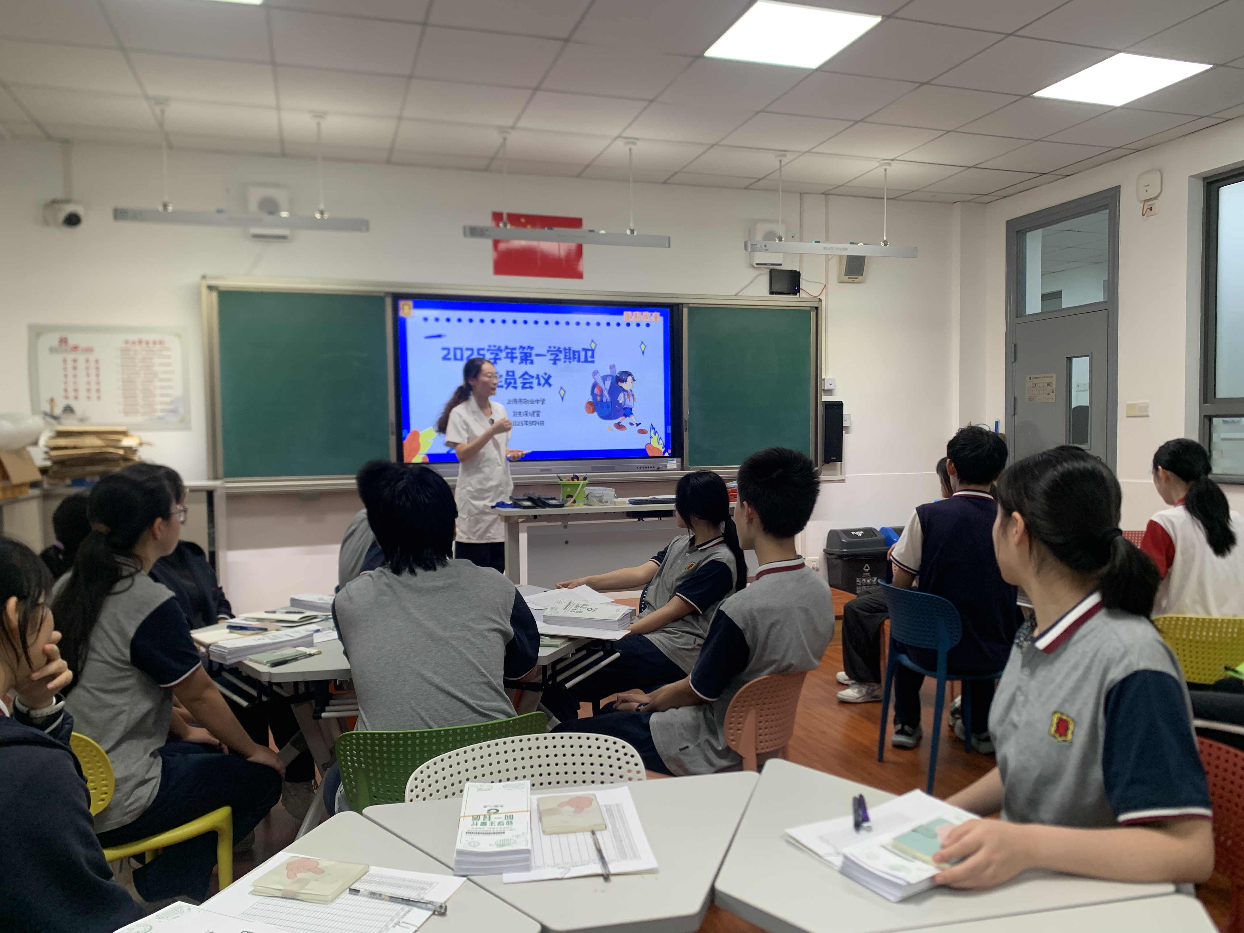 9月4日中午,在乐群楼105室开展了2025学年第一学期的新学期卫生员会议,会议由保健室王小雪和孟丽两位老师主持,24个班级的卫生员参会。