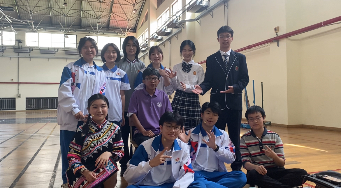 排演正值暑假,尽管天气炎热,但3位指导老师和18名参演同学积极投入排练。陈胄宇同学临时调整原有艺术专业课,陈周懿铭同学首次出演少数民族拉祜族父亲角色,通过b站自学云南方言,力求在剧中呈现出与角色年龄相符的舞台表现。多才多艺的沈之玥同学在排演同时,发挥个人特长,为剧组演员绘制群像漫画。剧中玉恩的扮演者是来自于2026届博雅班的包凯文。作为敬业中学学媒的主力成员之一,他也是本部剧所有媒体素材的提供者。由于本剧篇幅收压缩的原因,他的两段戏码最后全部被忍痛割舍。在暑假期末,新学期之初,校学媒联盟和戏剧社最为繁忙的时间节点,他投入了大量的个人时间,不计个人得失,最后促成了本剧的成功演出,被同学们亲切的称为kevin的他,上得了舞台,剪得了视频,是当之无愧的敬业媒体人!2027届4班罗思琪同学是对剧本、台词、配乐、灯光、背景、视频等剧组事务最为熟悉的本剧学生主理人,也是本届戏剧社社长。每一部精彩戏剧作品的背后,都有这样一位“当家人”。在舞台的最后方,她默默无闻地参与,保障整部剧的完美呈现。