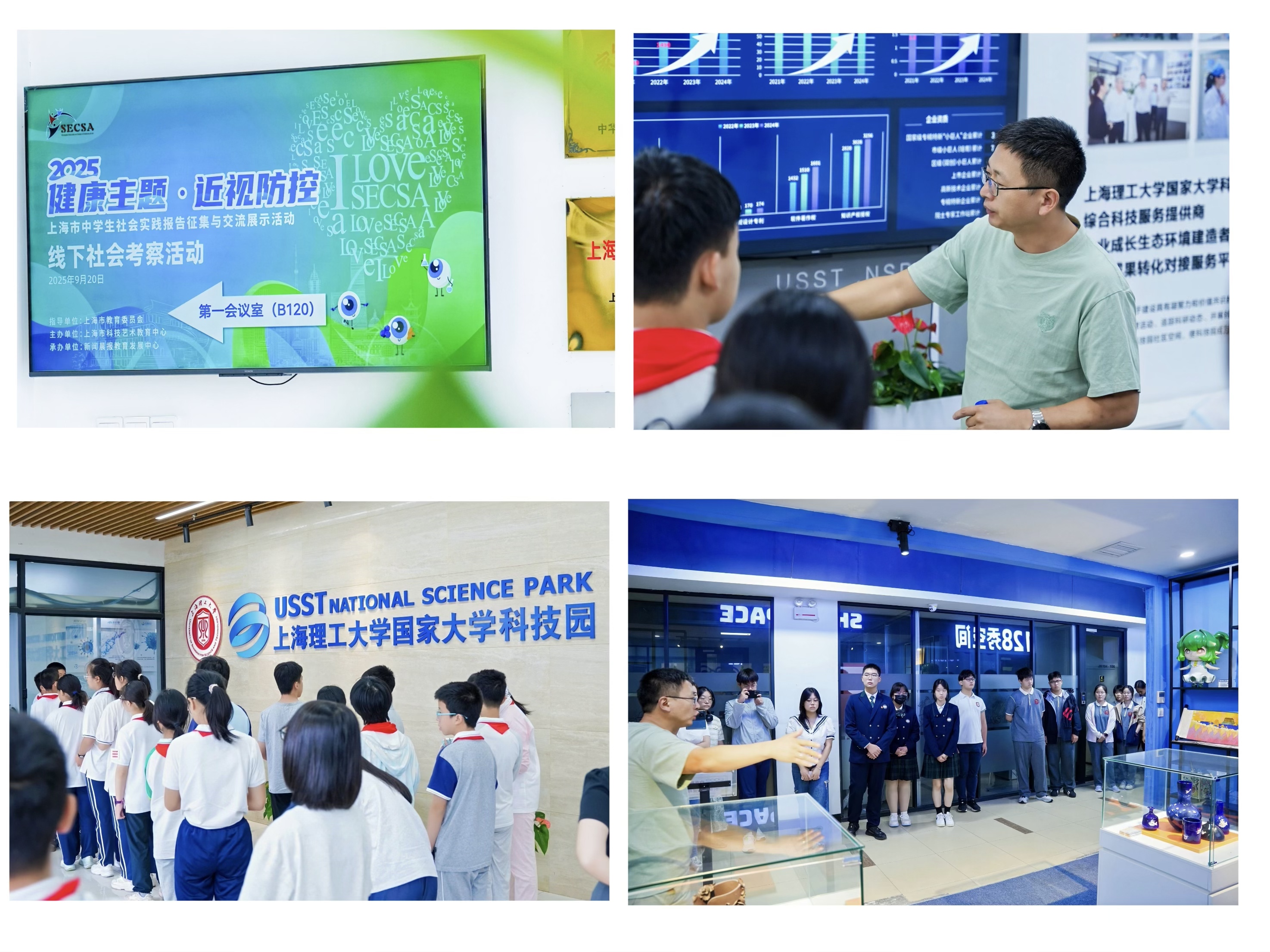 为进一步推动青少年近视防控工作,增强学生健康意识,由上海市教育委员会指导,上海市科技艺术教育中心主办、新闻晨报承办的2025年健康主题·近视防控,上海市中学生社会实践报告征集与交流展示活动线下考察于近日成功举行。本次活动吸引了来自多所中小学的学生代表和指导教师积极参与,敬业学子汤子月、徐之雯、江佳怡以及带队教师王小雪参加了本次活动。