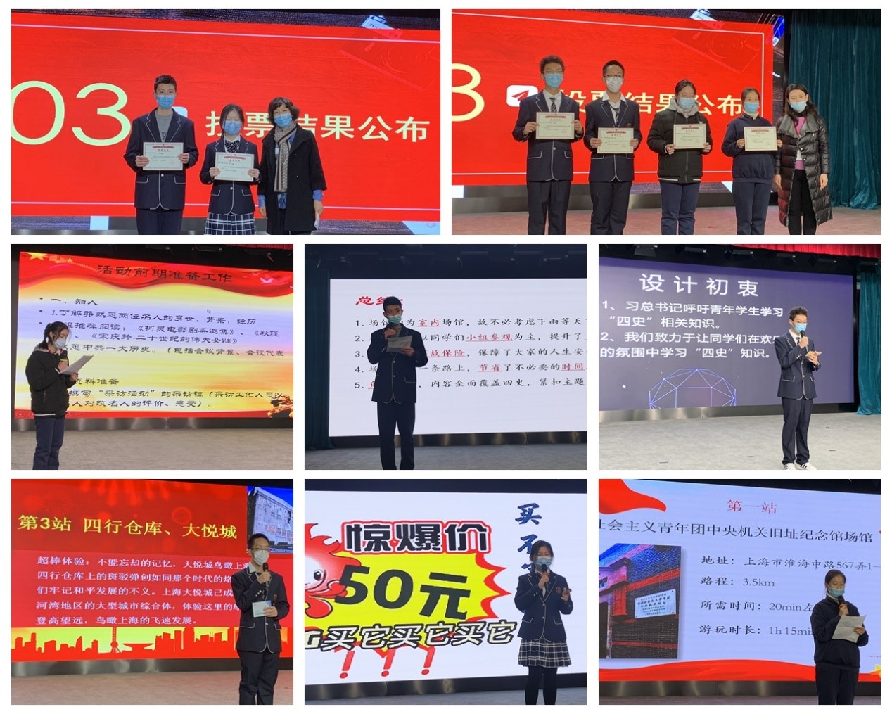 这次“红色行走”路线的设计,挑战学生的创意,也考验学生的实干精神。在参与指导的过程中,看到学生先借鉴同类活动经验, 对黄浦的红色旅游地点进行有序筛选和规划,集思广益构建大致的路线布局和罗列途中注意事项;而后在讨论中学会换位思考参与者的需求,细化路线规划并添加每个站点志愿者服务的具体安排;为确保每个目的地的游览体验,再分工分组利用周末时间实地考察,完善人员安排和注意事项;最后形成完整方案,汇报给全年级师生。这为他们提供了一个让他们通过努力、沉淀和突破将想法落地的机会,是一个珍贵的将理论付诸实践的过程。不论是学生个体的策划、表达能力,还是学生在小组中的协作能力,均得到了提升。