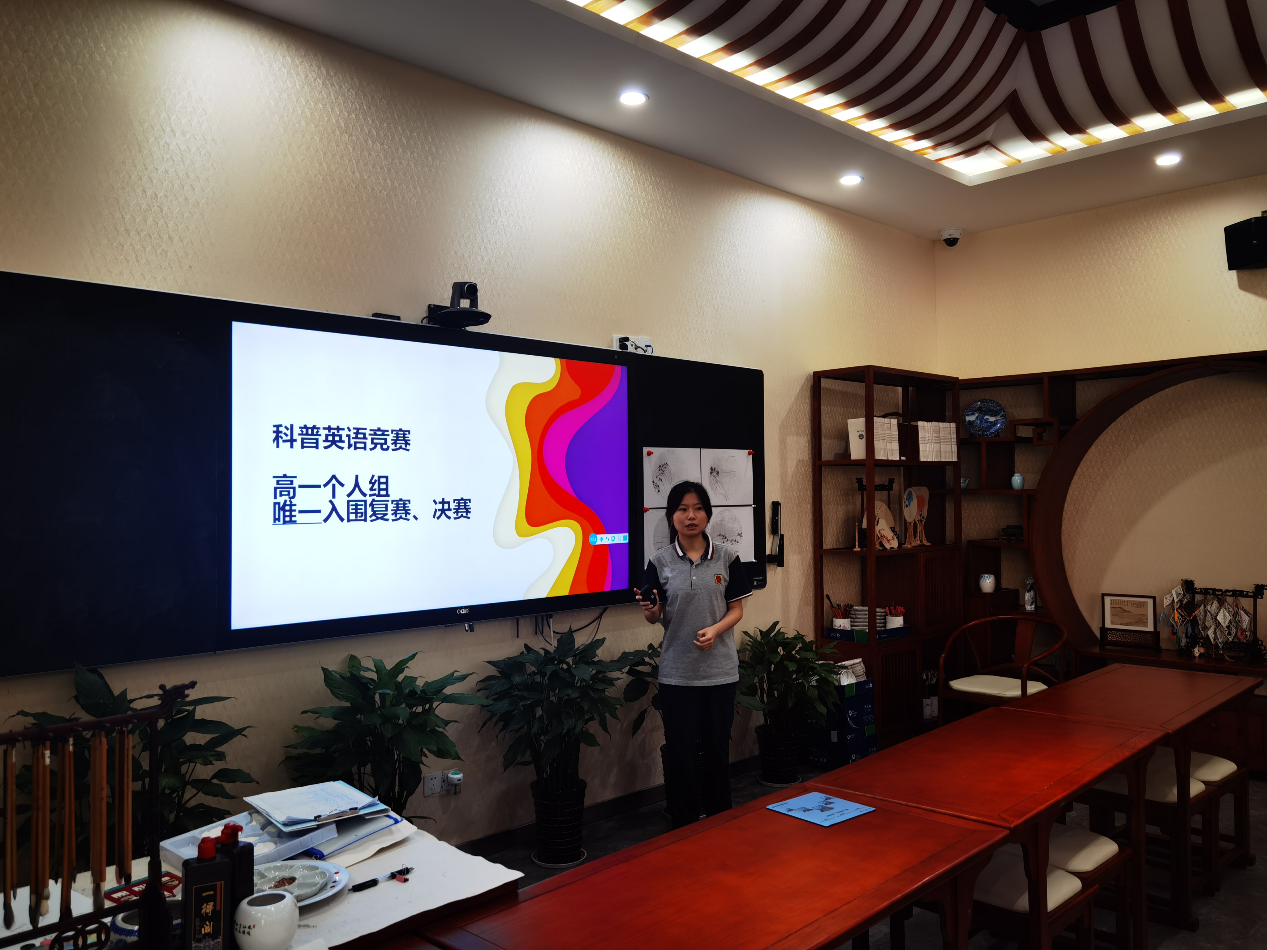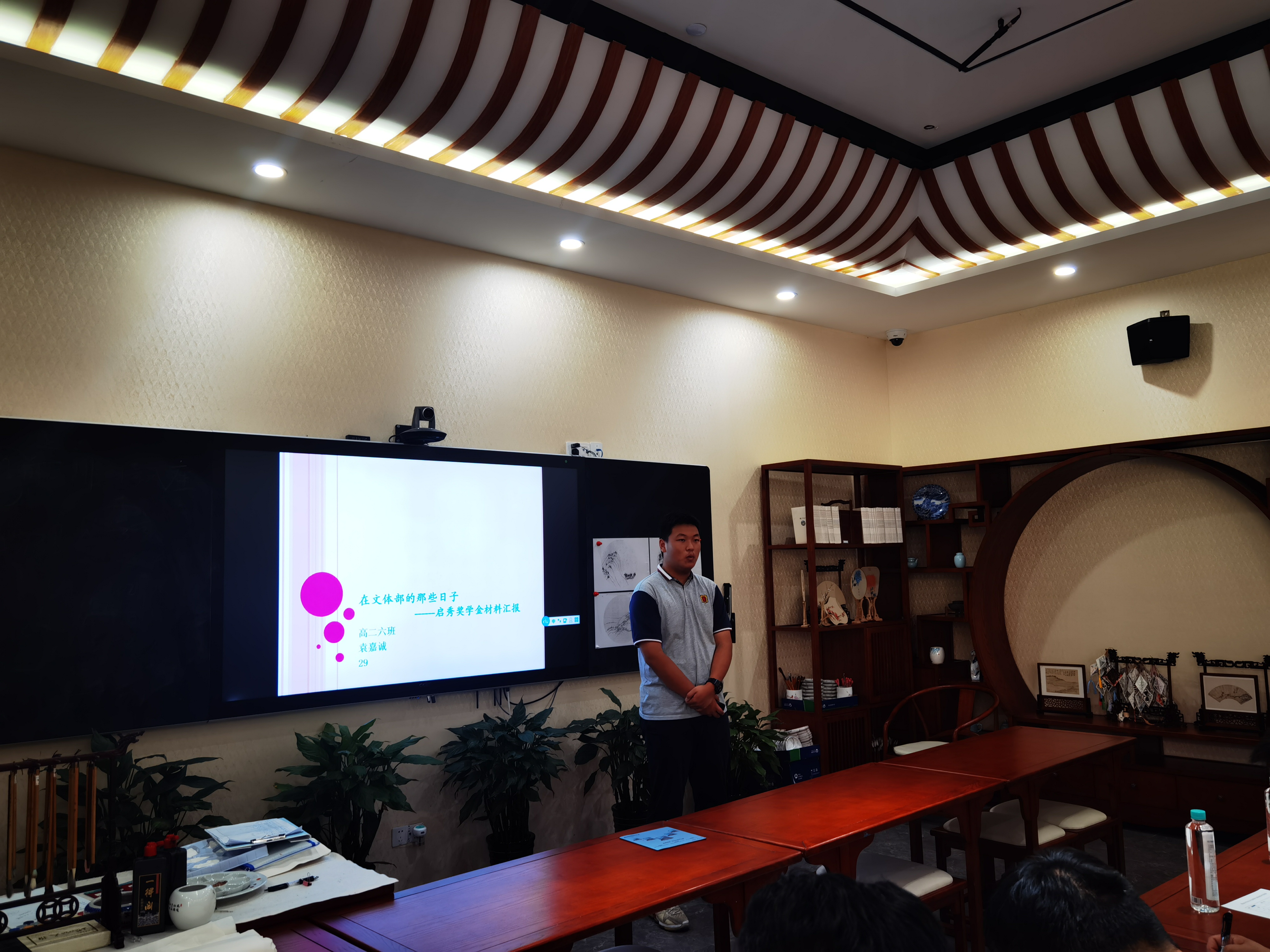 6月11日,在敬业楼一楼的创艺空间,来自敬业中学高一、高二、高三的13位同学参加了敬业中学2021年第九届启秀特别奖学金的评选活动。启秀奖学金创办者:敬业中学校友钱韫辉女士因工作原因无法亲临现场。参与本次评选活动的嘉宾有:校长金怡、党支部书记马伟、副校长张丽霞老师、工会主席王旭峰老师、教导主任耿令华老师、德育教导钟思慧老师和德育副教导袁凌蓉老师。候选同学按照抽签顺序依次上场做了三分钟的自我介绍。