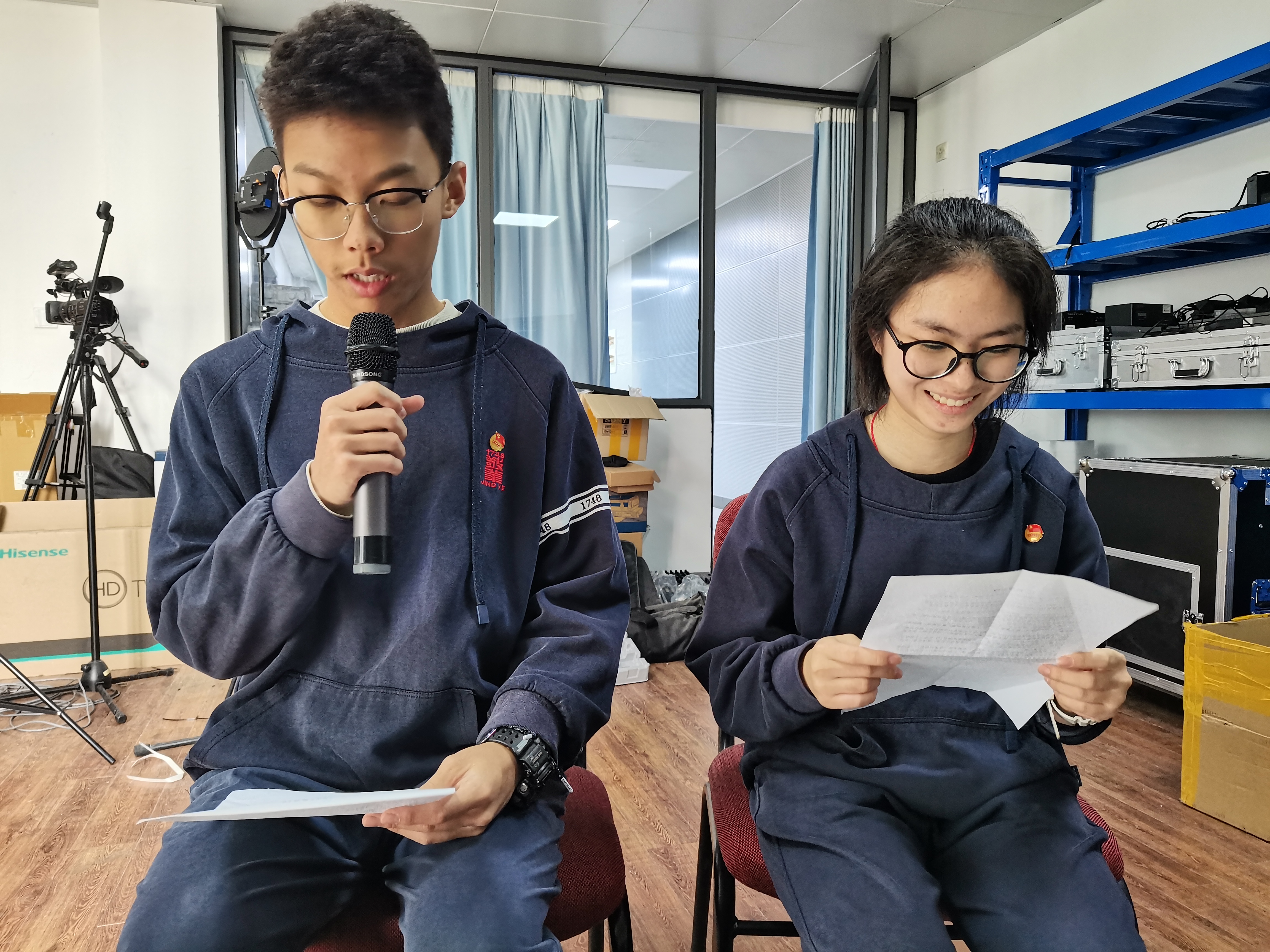 10月25日中午,“敬业fm”第二期电台节目如期播出。担任本期电台dj的分别是来自23届7班的张昱恒同学和23届8班的陆佳妮同学。本期电台的内容为播放向高一年级五至八班征集的歌曲、传达同学们的寄语并宣传“敬业说”电台节目。