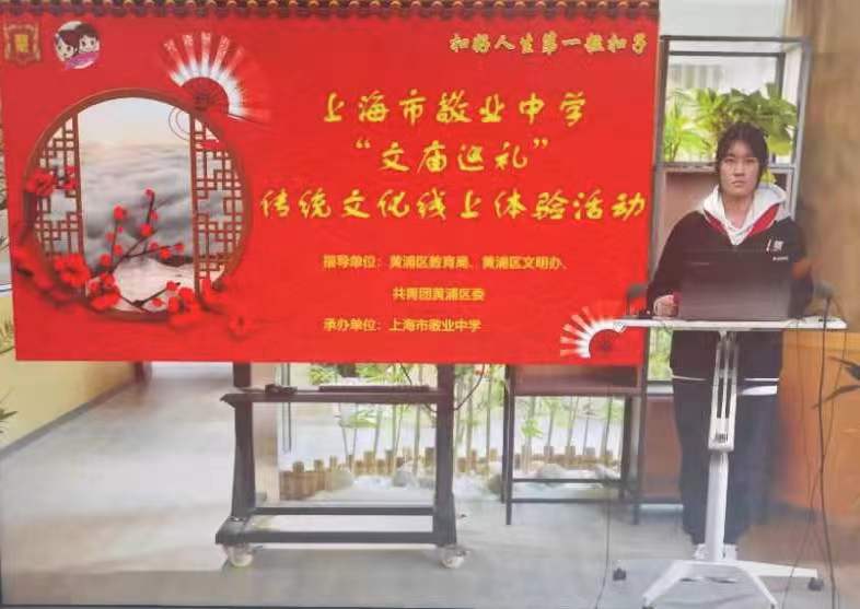 往年,冬至前夕,敬业中学会组织学生前往文庙祭祀孔子。到达文庙后会由老师致开幕词,在学长学姐的带领下,于大成殿前行礼。随后,同学们以小组为单位开展活动,共同完成九个活动任务,包括海滨邹鲁、明伦诵经、魁星对句等。今年,我校举行线上文庙巡礼活动,由曹璟老师领读了孔子祭文,同学们跟读。此外,同学们还对孔子像作揖,这不仅是为了表达对圣人、对知识的敬意,更是一份对传统文化的尊重。