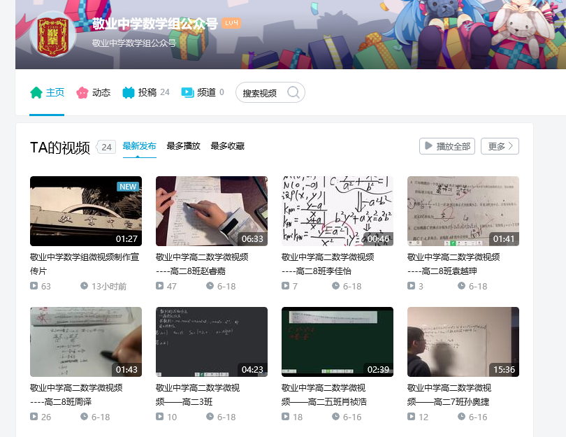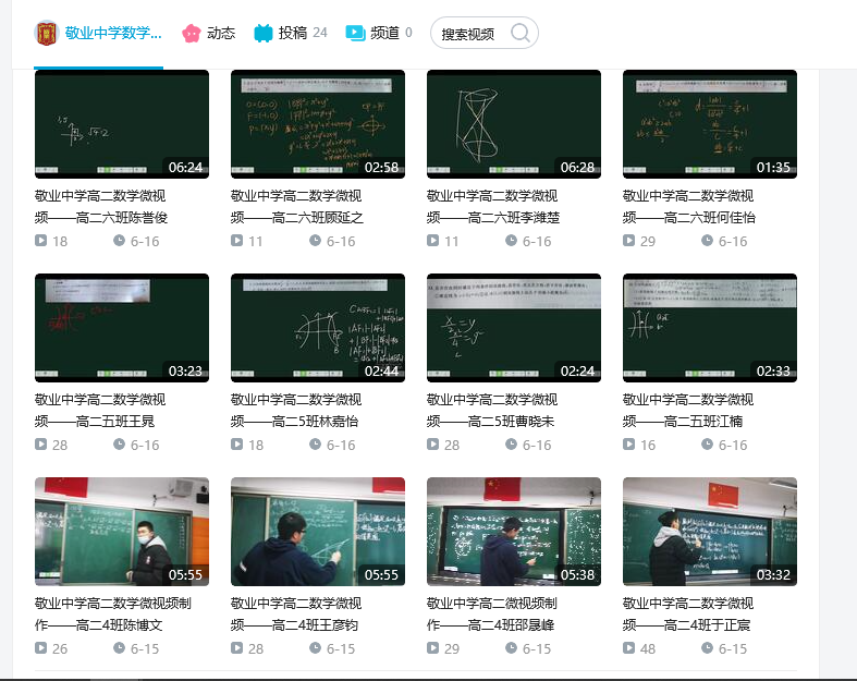 经过组内老师的讨论,为了能让更多同学看到同学们录制的讲题视频,数学组在b站创建了“敬业中学数学组公众号”,将同学们的讲题视频上传b站,同学们可以按自己的需要选择内容进行学习。
