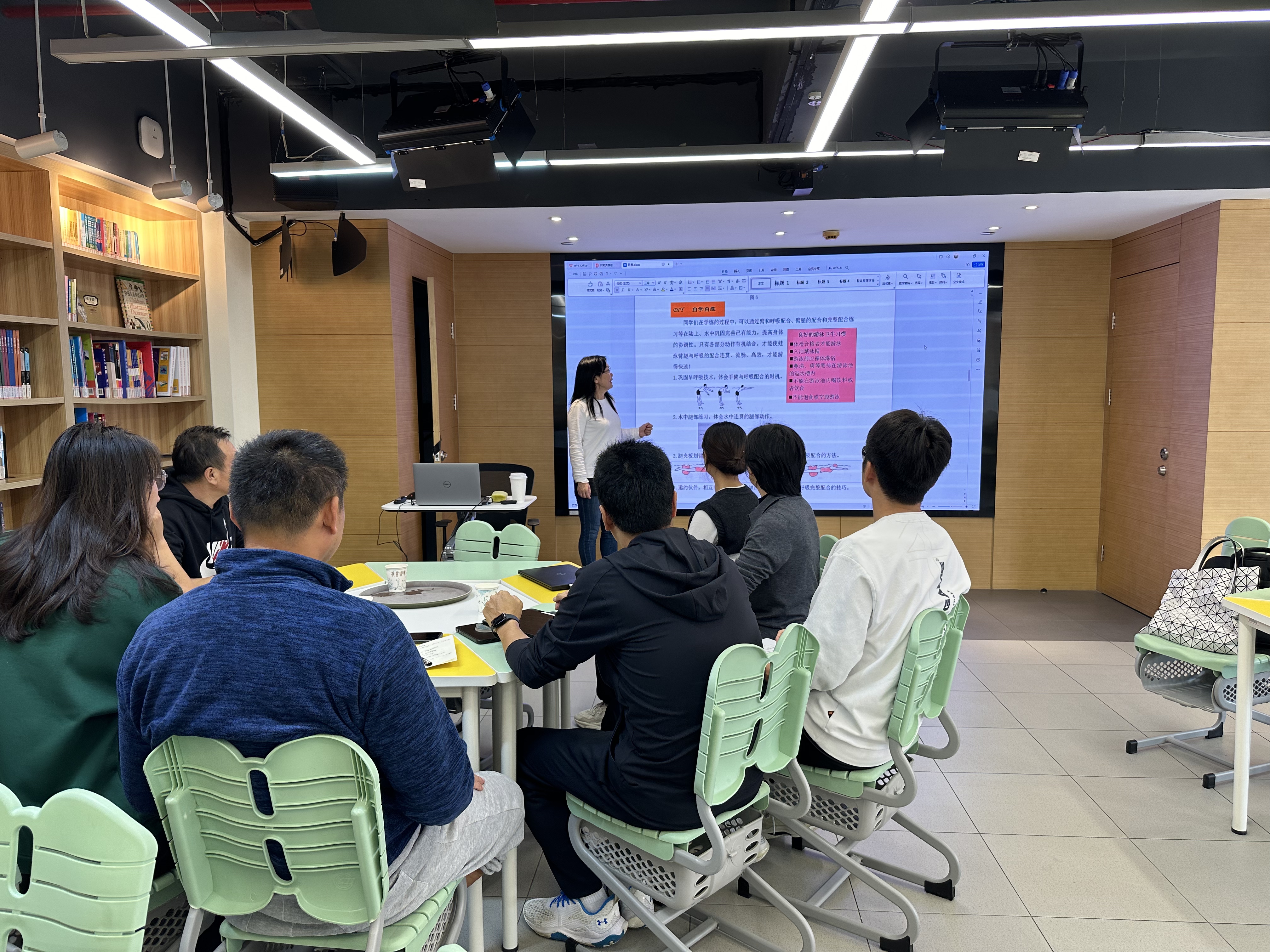 夏昕老师首先就上一阶段的编写情况进行了简要的总结与评价,其次对于教材编写的内容进行了更加详细的梳理。在梳理过程中,教师们群策群力,各抒己见,充分发挥自身的专业特长,对每个章节中的细节问题进行了更深入的讨论与思考,提出了许多建设性的意见,补充了“跨学科案例”以及“运动损伤与防治”两个章节的内容,之后根据每位教师的特长调整了分工任务。最后,借助本次活动的契机,夏昕老师为下一阶段体育教研组的游泳展示活动提供了平台与方向,教师们热烈讨论,明确了展示活动的内容与形式。相信在学校的支持以及夏昕老师的指导下,敬业中学体育“一条龙”游泳课程教材的编写工作以及展示活动都能如期且顺利完成。