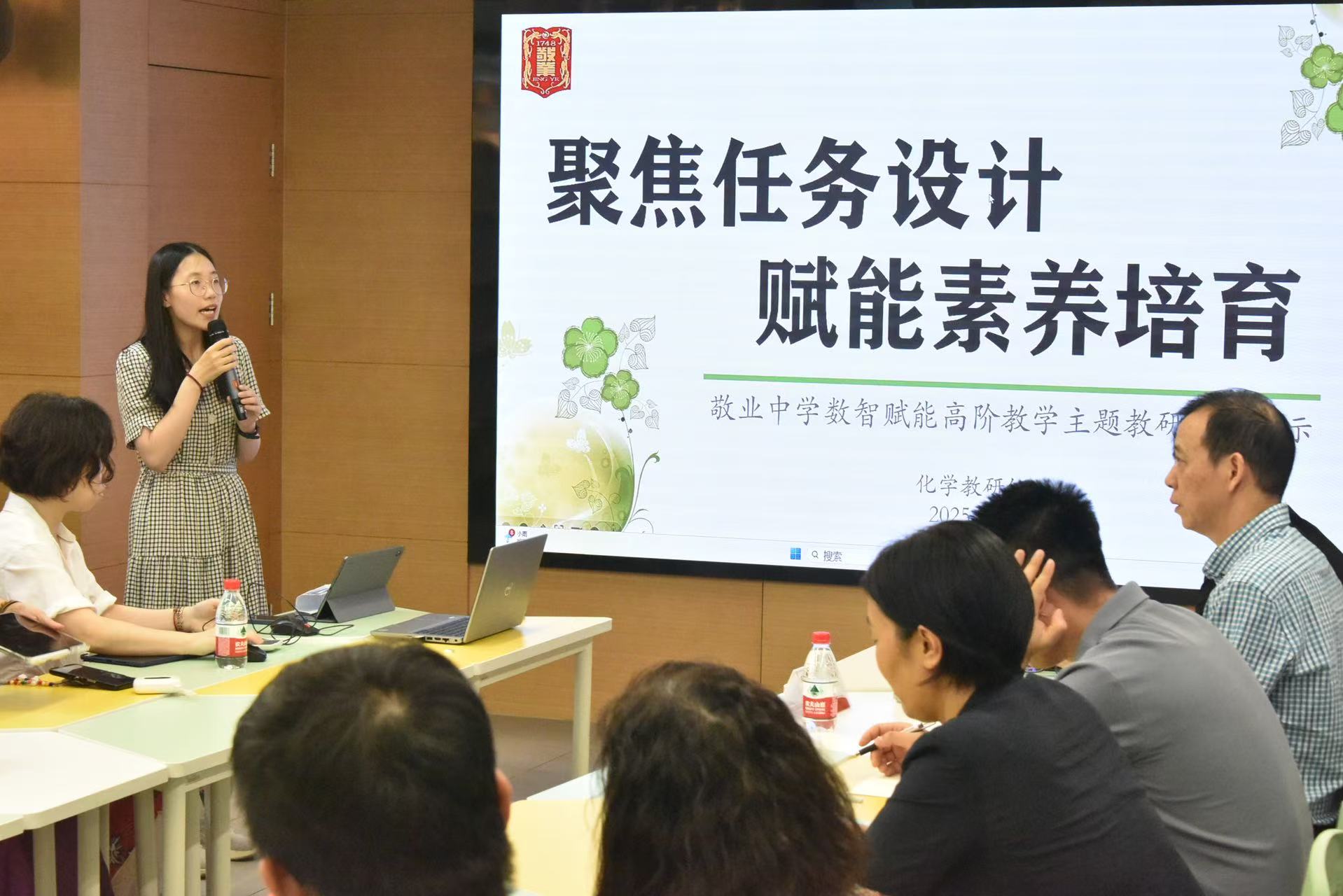 2025年9月19日,敬业中学化学教研组在敬业楼九楼开展了以“聚焦任务设计赋能素养培育”为主题的教研展示活动。本次活动特邀上海市特级教师、正高级教师夏向东老师,敬业中学校长张丽霞、副校长王旭峰等嘉宾莅临指导,各教研组长、备课组长共同参与。