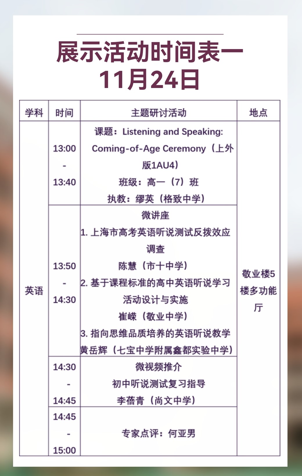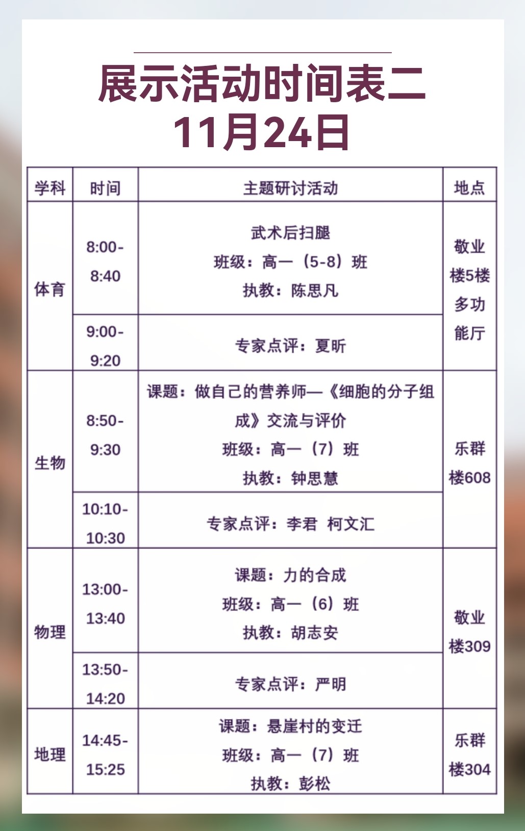 附1: 《聚焦单元教学 落实核心素养》——“双新”教学实践展示活动