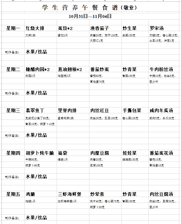 附:学生午餐菜单