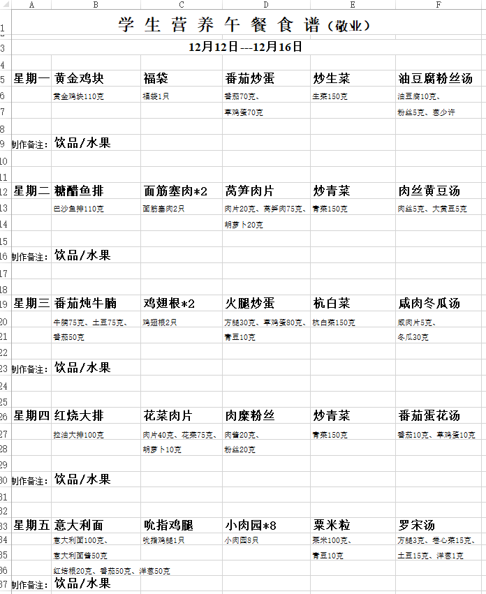 附:学生午餐菜单