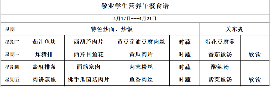 附:学生午餐菜单