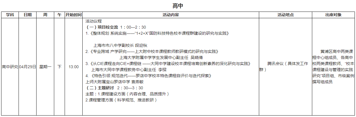 2024-04-29~2024-05-04中学教研活动安排