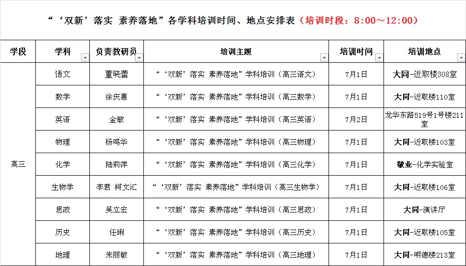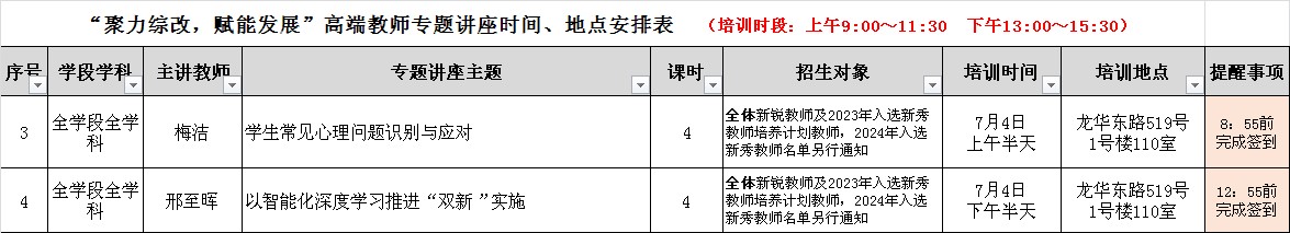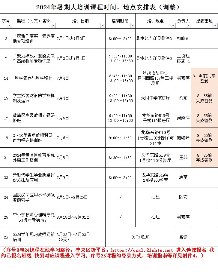 2024年暑期培训课程时间有调整,请以本通知为准,按安排表中的培训时间、地点准时参训,谢谢。