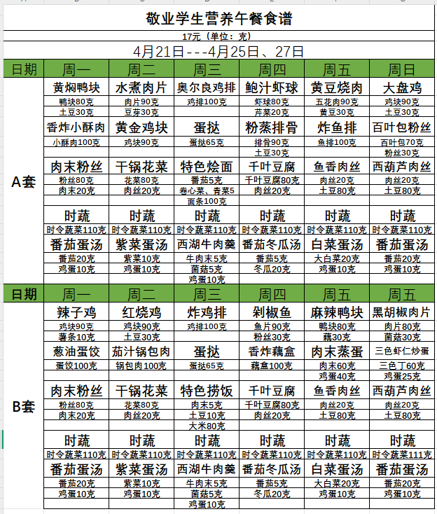 附:学生午餐菜单