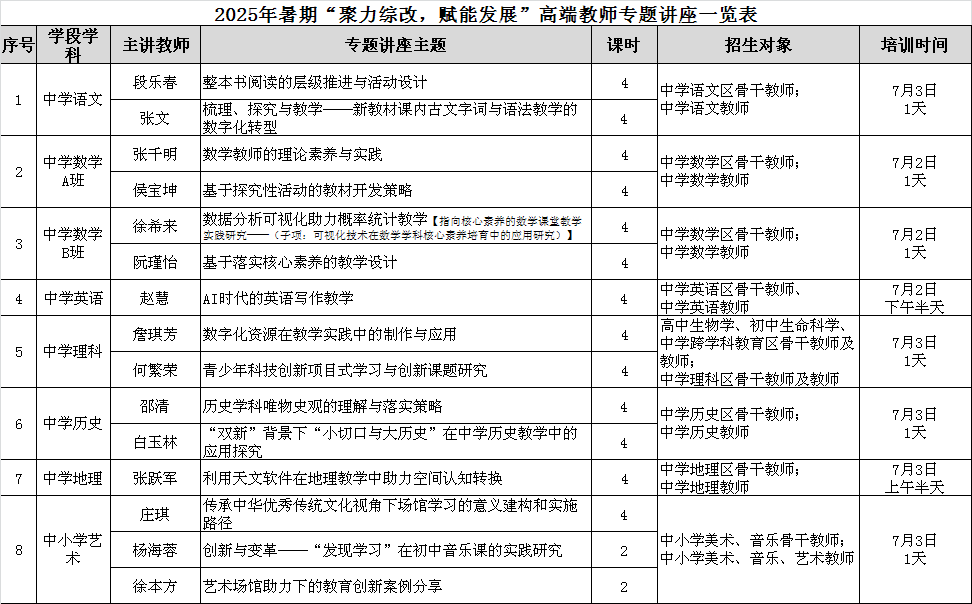 区级暑期培训即将开始,请根据时间点要求,配合完成以下工作。