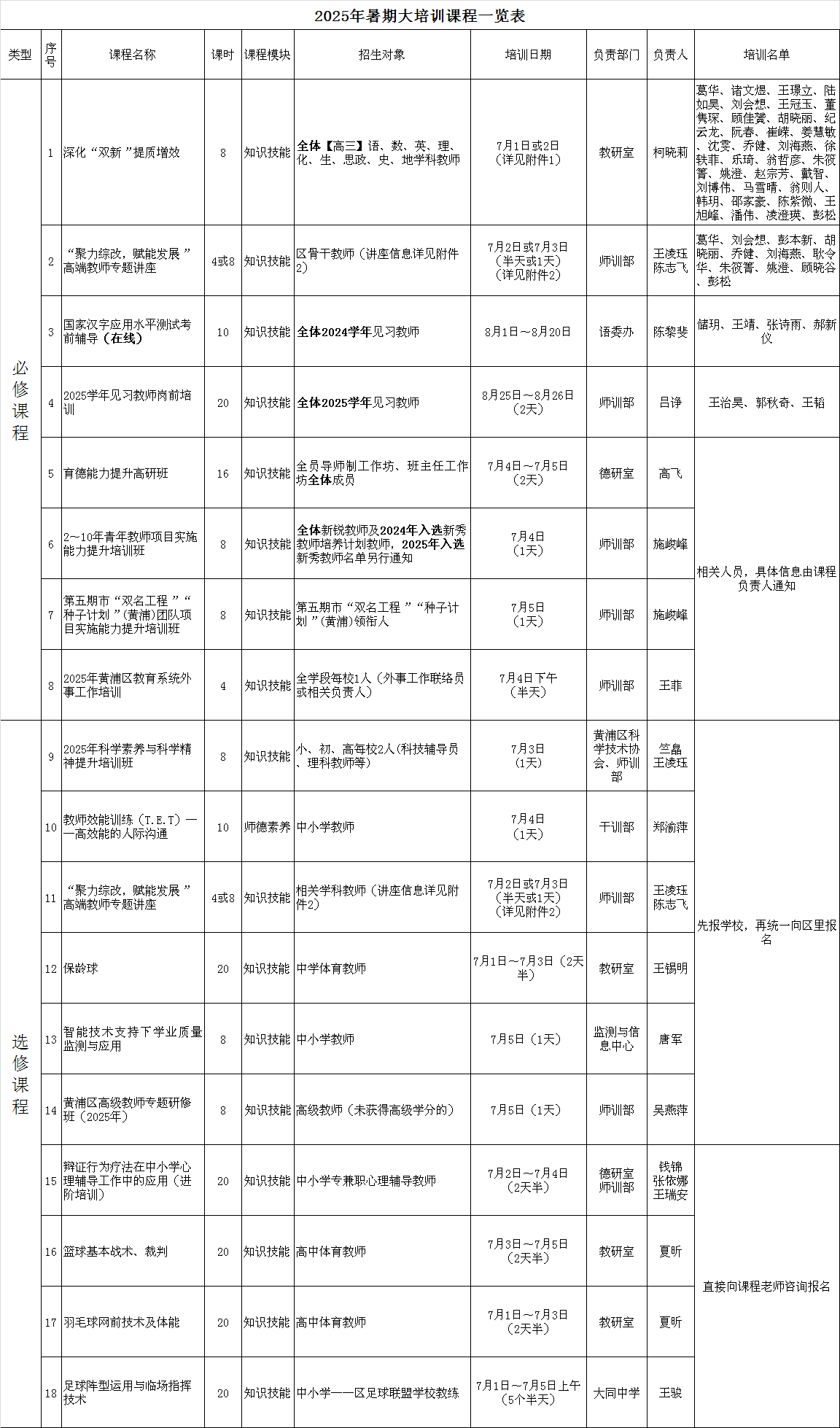 必修课程有指定对象,名单中列出的教师均需参加培训;