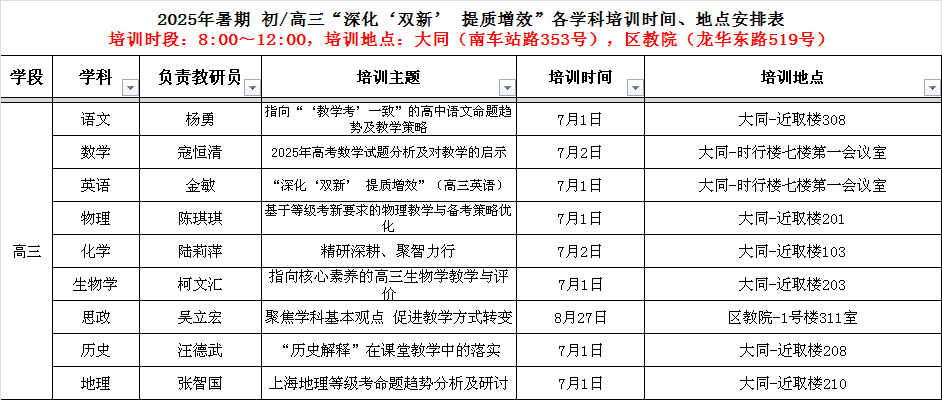附件2 高三“深化‘双新’ 提质增效”各学科培训时间、地点安排表