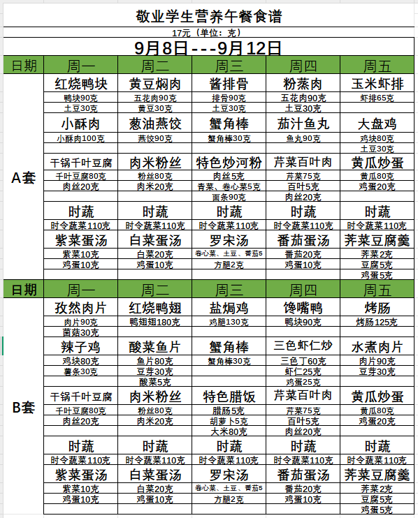 附:学生午餐菜单